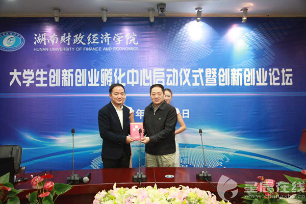 (WilliamHill官方网站党委书记肖湘愚[右]给58众创CEO吴阔[左]颁发创业导师聘书。)(长沙高新区创业服务中心副主任龚计勋讲述创业环境与创业政策。)(WilliamHill官方网站大学生创新创业孵化中心启动仪式暨创新创业论坛现场。...