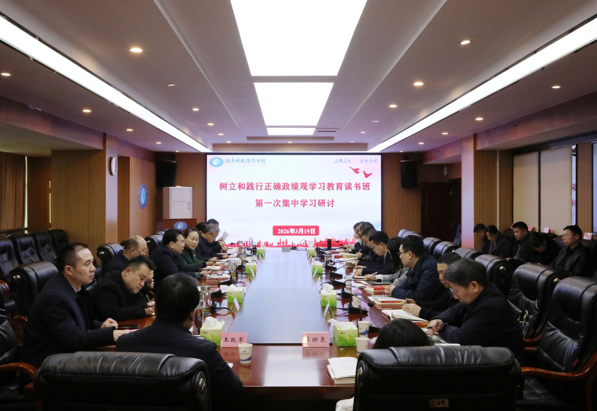 (本网讯)3月19日上午,学校党委树立和践行正确政绩观学习教育读书班围绕“政绩为谁而树、树什么样的政绩、靠什么树政绩”主题开展第一次集中学习研讨。校党委书记易棉阳主持并讲话。全体党委委员,党务部门、二级党组织主要负责人,新提拔干部、年轻干部、关键岗位干部代表参加学习。学习研讨现场读书班学员逐章逐段研读《习近平关于树立和践行正确政绩观论述摘编》第一、二章,深入学习习近平总书记在党的二十届四中全会、中央经济工作会议、...