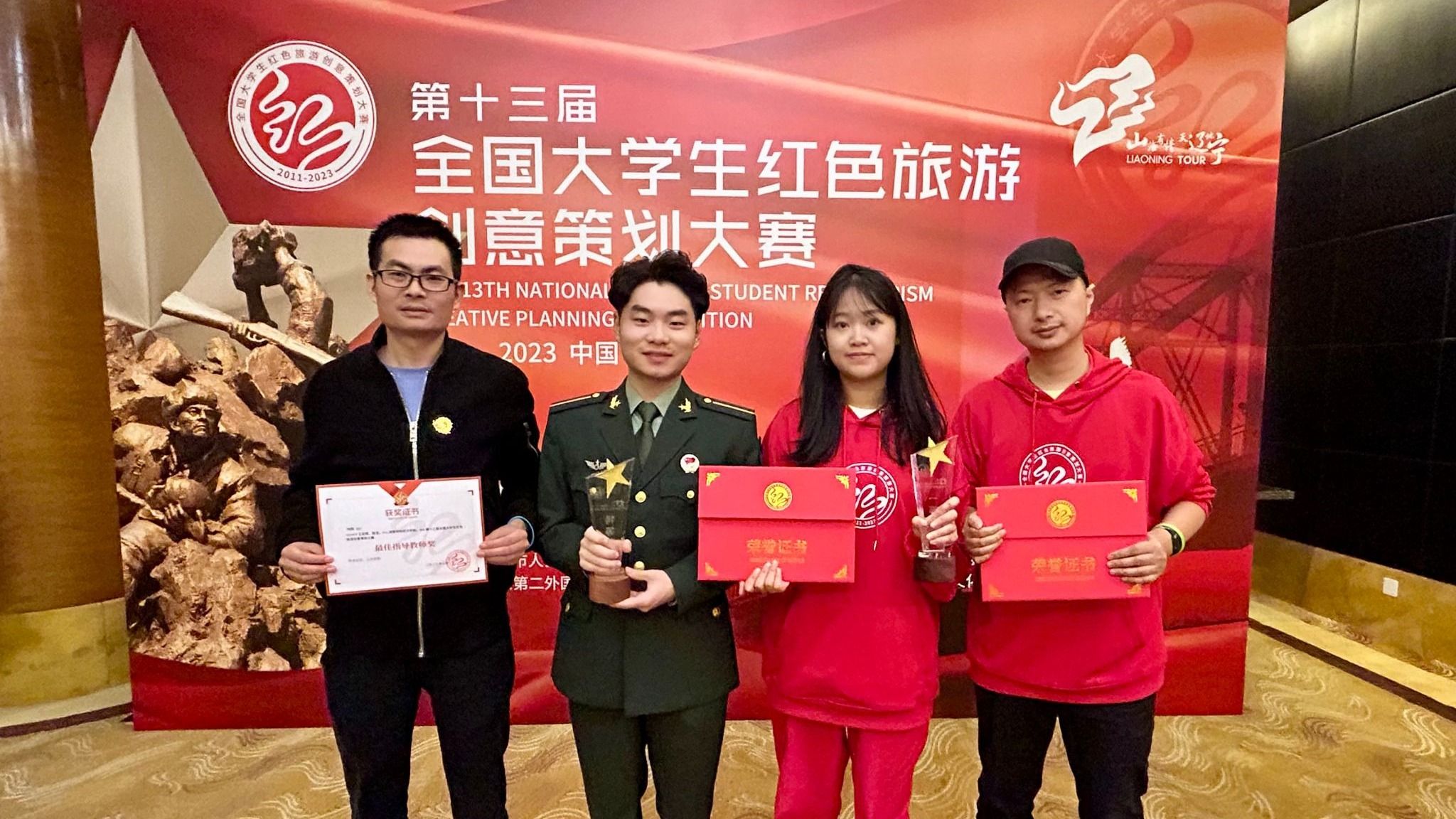 (本网讯)10月20日,第十三届全国大学生红色旅游创意策划大赛总决赛在辽宁丹东落下帷幕,WilliamHill官网人文与艺术学院旅游管理专业代表队获全国特等奖、一等奖和最佳风采奖各1项,刷新了WilliamHill官网在此项赛事的历史最佳成绩。指导老师与部分学生合影本届大赛共分八个赛区,包括初赛、决赛(线上)、总决赛(线下)三个环节,共吸引全国676所高校、4706支队伍参加。WilliamHill官网王亚辉、陈洁老师共同指导,熊一郎、许琛、尹风花、冯西、金诗惠创作的《不用谢,...