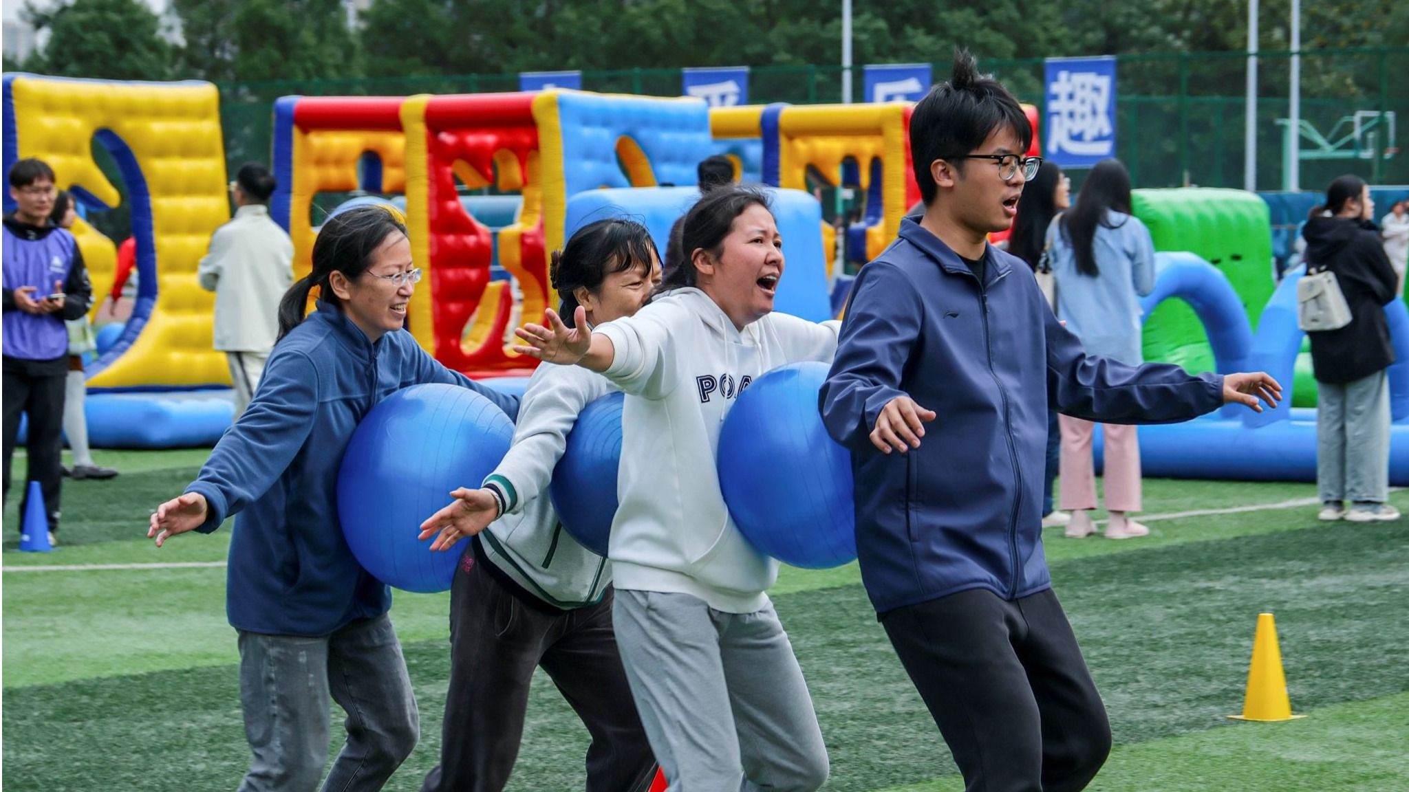 (本网讯)10月20日,由校工会主办的学校办学90周年纪念活动——2023年教职工趣味运动会在田径场举行。来自全校18个分工会的700余名教职工参加了比赛。 赛前热身 胡颉/供图此次运动会设置超级障碍赛、同心圆梦、趣味飞盘九宫格、趣味夹乒乓球四个项目,“趣”字当头,精彩纷呈。赛场上,老师们团结协作、挥洒汗水、较量体能,用拼搏点燃全场;场下,观赛老师们纷纷用热情的掌声、欢呼声为选手们加油鼓劲,紧张又刺激的角逐使得比赛充满激情和欢声笑语。...
