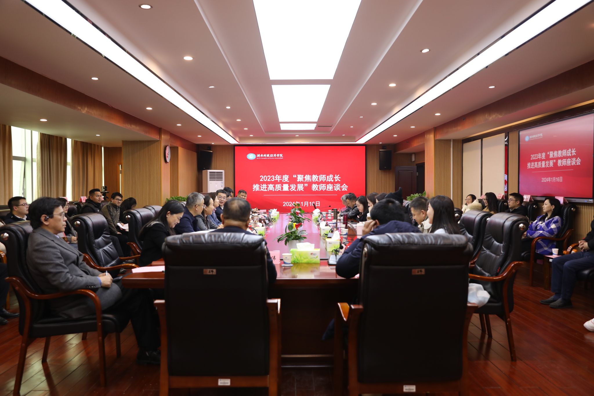 (本网讯)1月16日,学校在办公楼715会议室召开2023年度教师代表座谈会,就学校发展、青年教师成长等听取一线教师的意见和建议。校党委书记杨兰英、校长刘长庚、党委副书记苏玲、副校长郭国强、副校长刘钟理出席,相关职能部门负责人及各二级学院教师代表参加座谈。刘钟理主持会议。会议现场刘长庚从人才培养、科学研究、社会服务等方面回顾了学校2023年工作开展情况,总结了学校在招生就业、教育教学、科学研究、后勤保障、人事制度改革等工作中取得的成绩,...