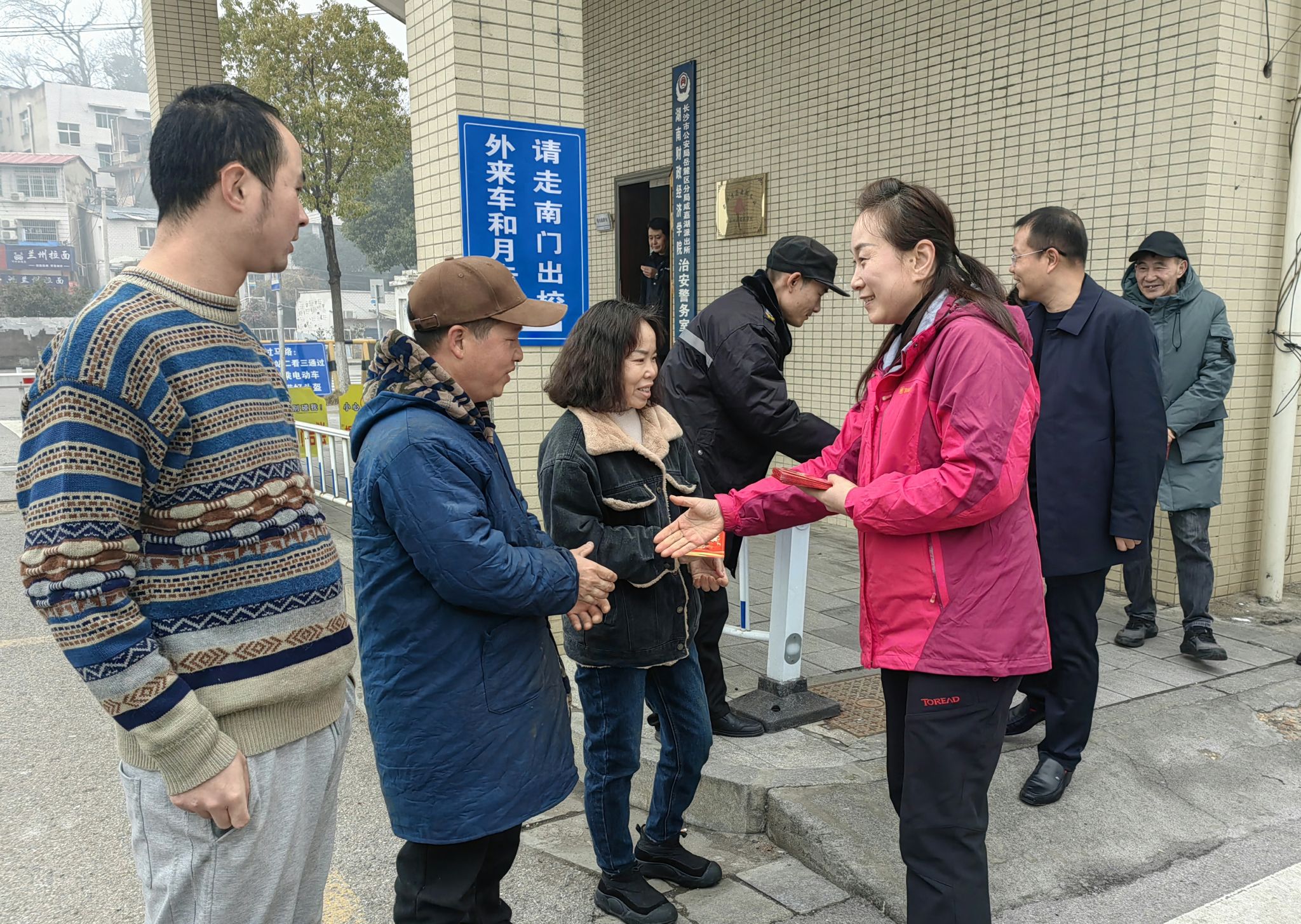 (本网讯)兔去龙来辞旧岁,继往开来贺新春。2月10日,正值农历大年初一,学校党委副书记苏玲带队开展校园安全检查,看望慰问春节期间仍坚守工作岗位的后勤、保卫人员,向大家致以新春问候和诚挚祝福。党政办公室、保卫部、后勤处、雷锋学院相关负责同志陪同。苏玲一行先后走访了主校区南校门、教学楼、学生宿舍、西校门、配电间,雷锋校区行政楼以及学生宿舍。慰问物业人员慰问值守保安慰问宿舍管理员慰问一线工作人员校领导与雷锋学院全体值守员工合影“...