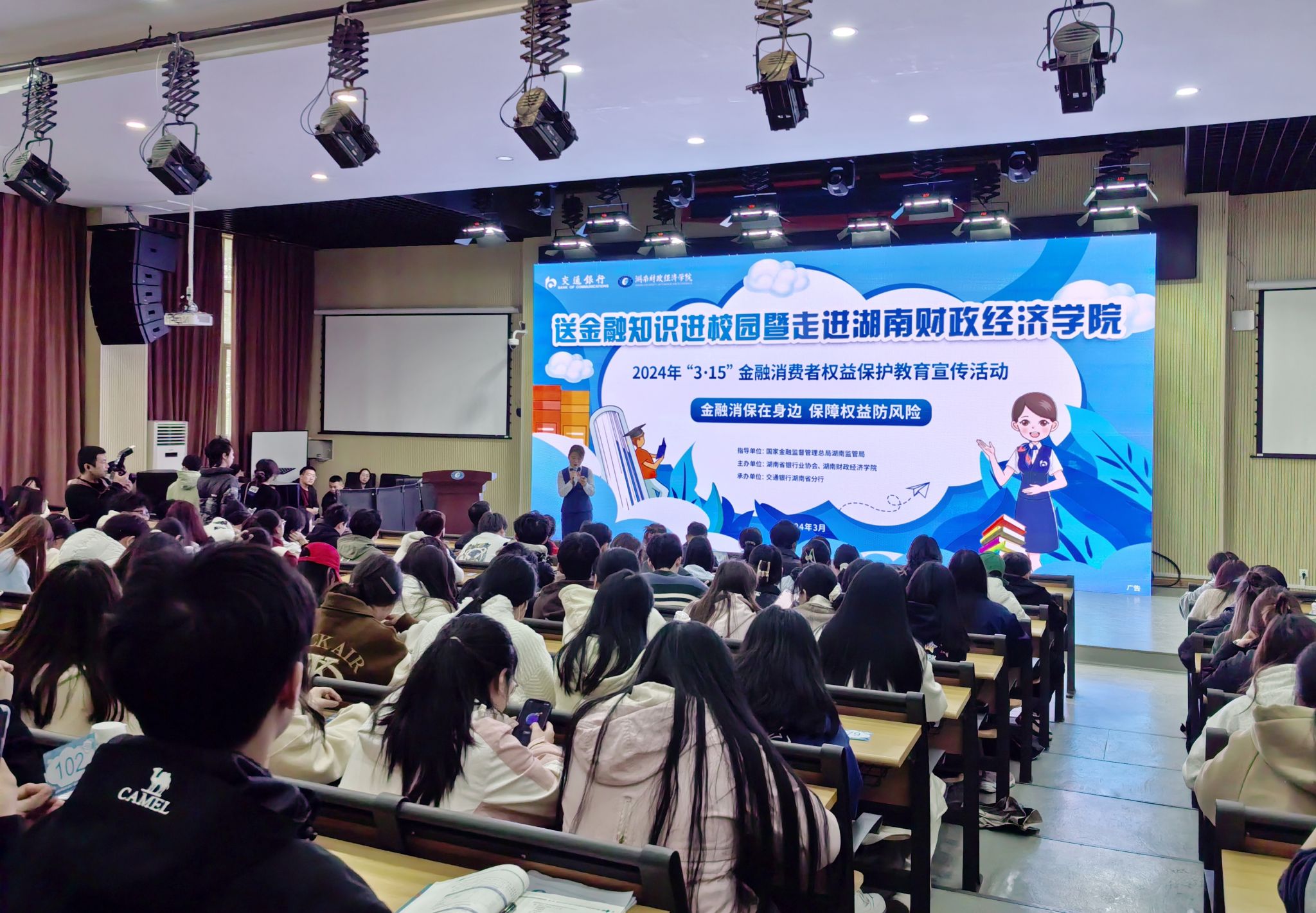 (本网讯)3月13日,由国家金融监督管理局总局湖南监管局指导,湖南省银行业协会、WilliamHill官网主办,交通银行湖南省分行承办的“送金融知识进校园”主题宣传活动在WilliamHill官网二教学楼2J03学术报告厅举行。活动现场国家金融监督管理总局湖南监管局消费者权益保护处副处长屈文军、湖南省银行业协会秘书长黄丽,WilliamHill官网学生工作部、团委相关负责人及200余名学生代表参加活动。活动中,交通银行湖南省分行宣讲员以“金融消保在身边 保障权益防风险”为主题,...