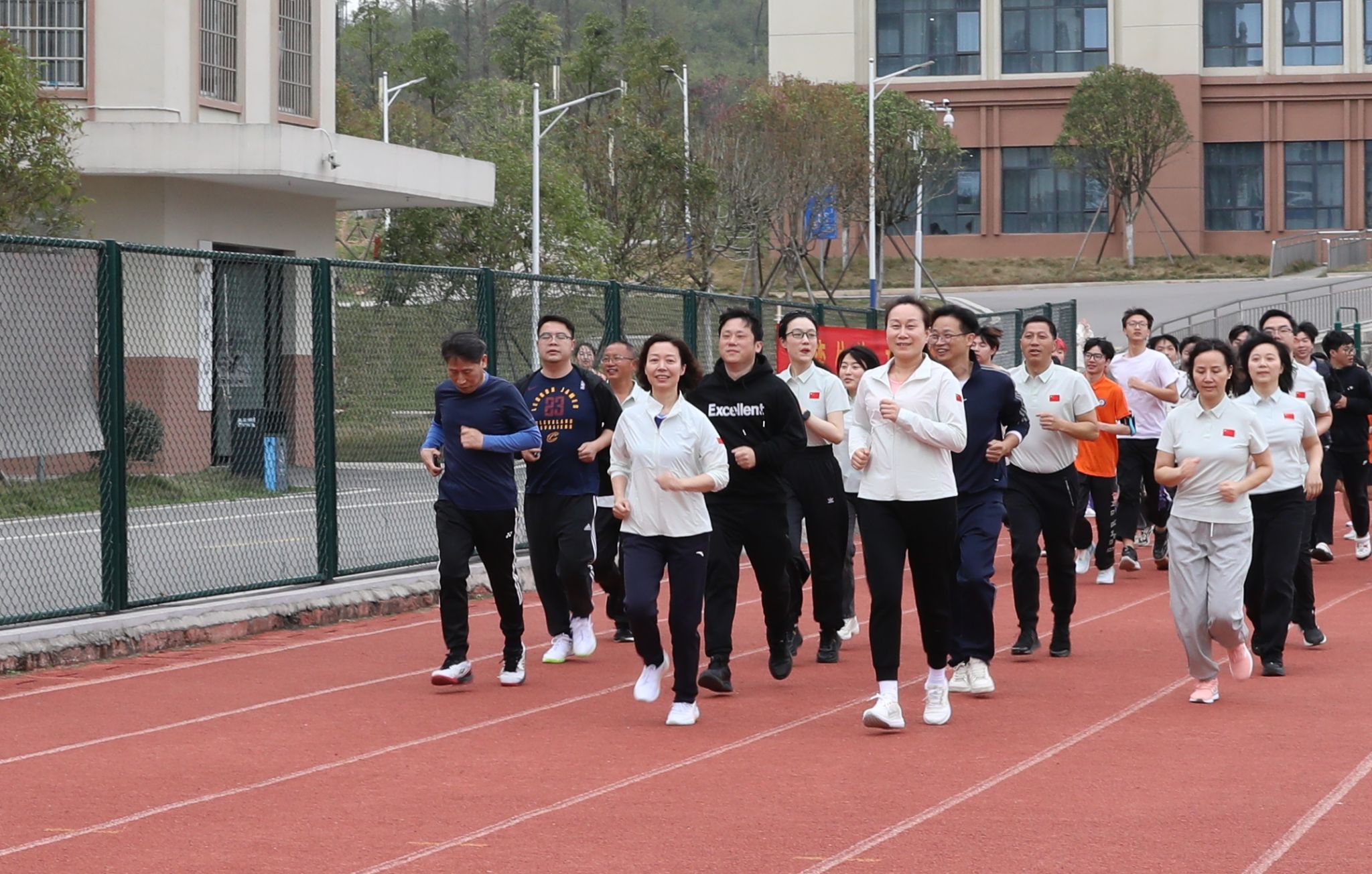 (本网讯)3月27日下午,学校在雷锋校区田径场举行校园百公里跑启动仪式,以寓教于行、健康向上的体育运动,培养师生热爱体育、崇尚运动的健康观念和良好习惯,增强师生体质健康水平。校党委书记杨兰英、党委副书记苏玲领衔开跑,副校长郭国强鸣枪发令,1000余名师生代表参与其中。启动仪式由苏玲主持。启动仪式现场 何妍/摄杨兰英(中)致辞并宣布校园百公里跑活动正式启动 何妍/摄启动仪式上,杨兰英致辞并宣布校园百公里跑活动正式启动。...