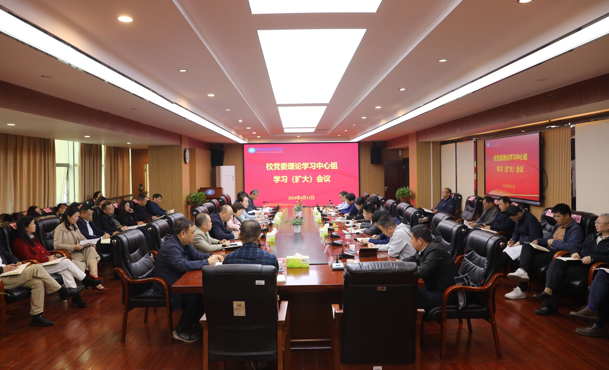 (本网讯)4月11日,学校党委理论学习中心组召开扩大会议,专题学习习近平总书记在湖南考察时的重要讲话和指示精神,坚定推动高质量发展的信心决心,努力增强推动高质量发展本领,助力实现“三高四新”美好蓝图。校党委书记杨兰英主持学习会并作总结讲话。会议现场校党委副书记苏玲领学了习近平总书记在湖南考察时的重要讲话、在新时代推动中部地区崛起座谈会上的重要讲话,省委常委会(扩大)会议精神,习近平总书记关于力戒形式主义官僚主义、...