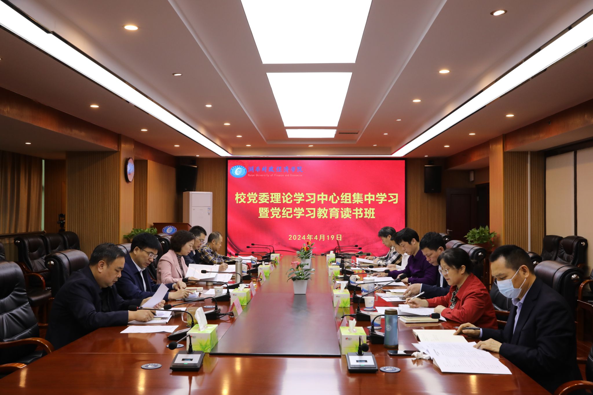 (本网讯)4月19日,校党委理论学习中心组开展集中学习研讨暨党纪学习教育读书班集中学习,全面领会《中国共产党纪律处分条例》的内涵要义和实践要求,切实把思想和行动统一到党中央决策部署上来。校党委书记杨兰英主持并作总结讲话,全体在家校领导、校纪委委员参加学习。活动现场党委委员、副校长郭国强领学习近平总书记关于党的纪律建设的重要论述、习近平总书记关于党纪学习教育的重要讲话和指示精神、《中国共产党纪律处分条例》...