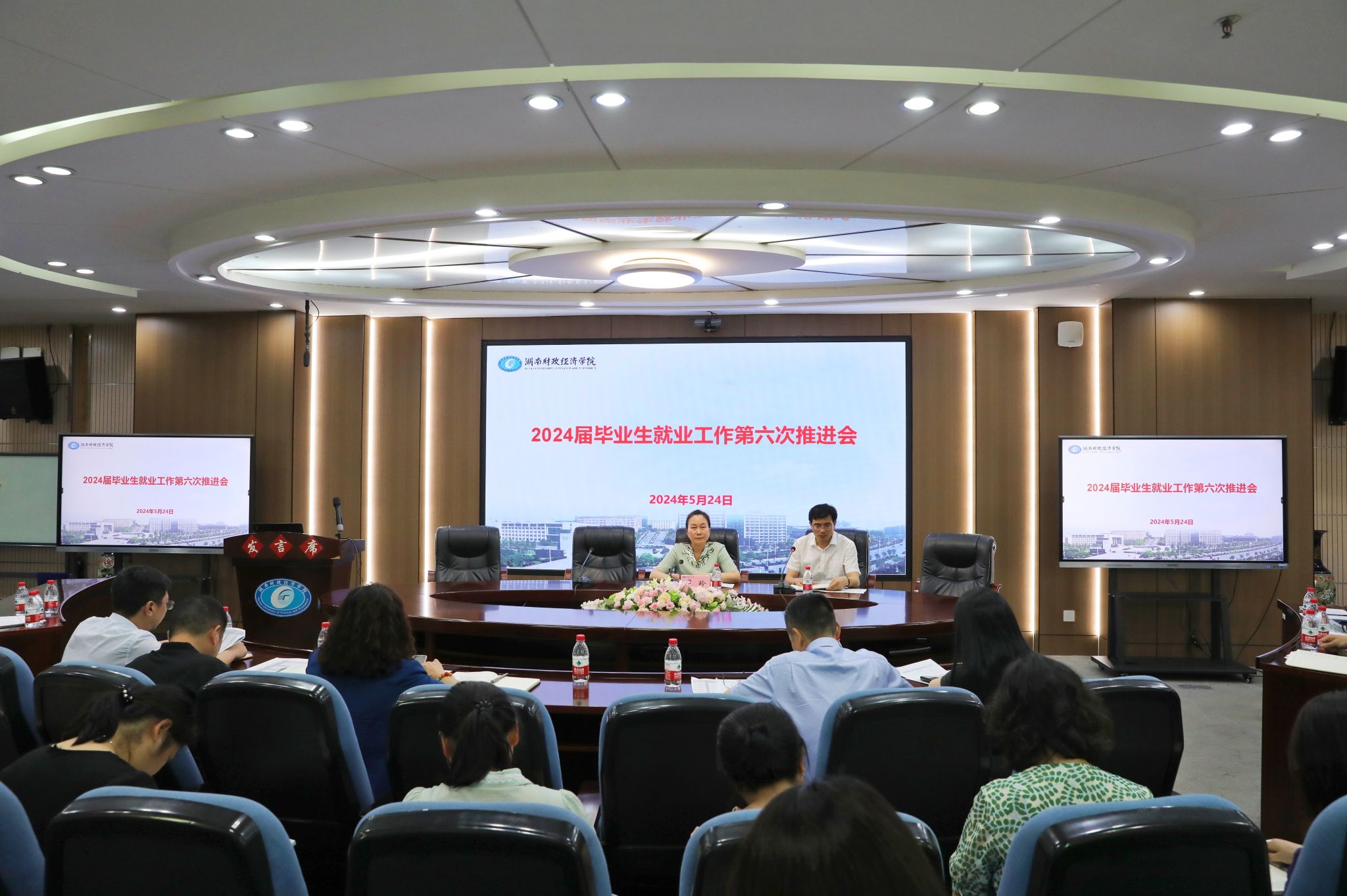 (本网讯)5月24日下午,学校在办公楼五楼视频会议室召开2024届毕业生就业工作第六次推进会暨2024年大学生创新大赛工作推进会。校党委副书记苏玲出席并讲话。学生工作部、教务处、科研处、团委主要负责人,各二级学院党政主要负责人、分管创新大赛副院长(副书记)及就业创业中心全体工作人员参会。会议现场就业创业中心主任刘振强传达了全省高校毕业生等青年就业创业工作电视电话会议精神,就近期毕业生就业情况,毕业生就业工作下一步工作安排,...