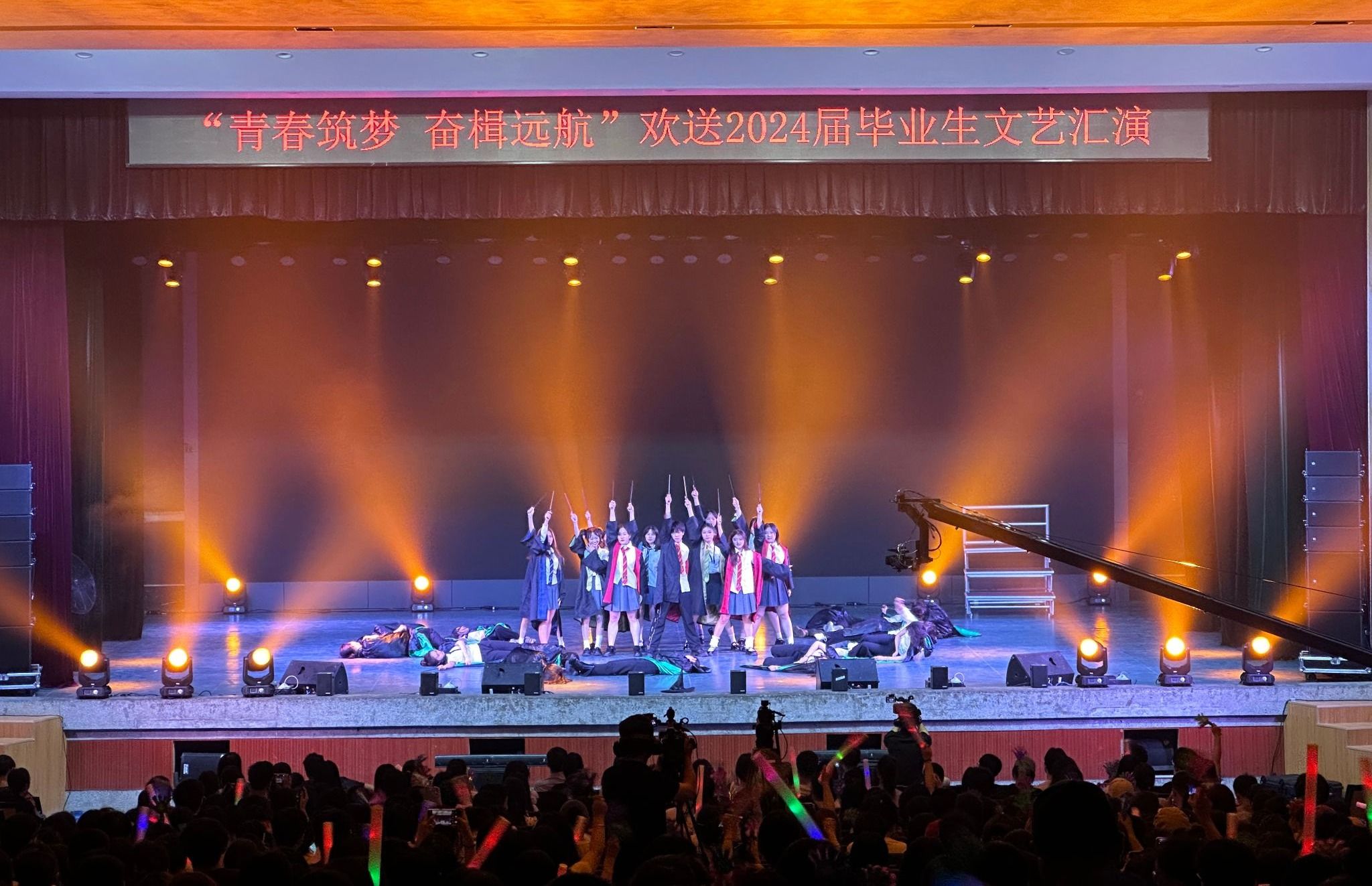 (本网讯)6月12日晚,“青春筑梦 奋楫远航”欢送2024届毕业生文艺汇演在主校区大礼堂举行。校党委副书记苏玲,各职能部门、二级学院的老师们与2024届毕业生一同观看晚会。19时,伴随着动感澎湃的音乐响起,由Sky街舞社表演的开场舞《SKY》拉开了文艺汇演序幕,演员们酷炫的舞步、活力四射的动作瞬间点燃全场热情。体育学院集体舞《执扇》,怀抱赤子之心筑梦前行,是对毕业生的倾情鼓励亦是殷切期望。经济地理学院、马克思主义学院、...