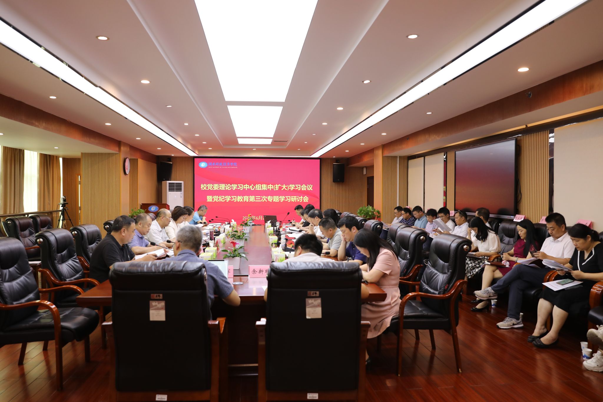 (本网讯)6月20日,校党委理论学习中心组开展集中(扩大)学习暨党纪学习教育第三次专题学习研讨,深入学习领会习近平总书记关于全面加强党的纪律建设的重要论述,深研细读《中国共产党纪律处分条例》有关廉洁纪律和群众纪律有关要求。校党委书记杨兰英主持会议并作总结讲话。会议现场校党委副书记苏玲逐条领学《条例》(修订条例对照版)第八章“对违反廉洁纪律行为的处分”、第九章“对违反群众纪律行为的处分”有关内容。校党委副书记苏玲,...