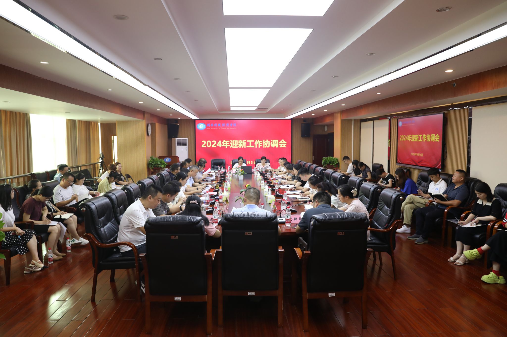 (本网讯)9月5日下午,学校在办公楼715会议室召开2024年迎新工作协调会。副校长刘钟理主持会议并讲话。相关职能部门主要负责人,各二级学院分管学生工作负责人及相关服务单位负责人参加。会议现场会上,学生工作部、武装部主要负责人结合迎新及入学教育工作方案、开学典礼暨军训动员大会工作方案,对迎新工作、开学典礼的时间安排、任务分工、重点环节等方面作了详细解读。与会人员就迎新中各环节和可能遇到的问题进行了商讨,对迎新方案进一步补充和完善。...