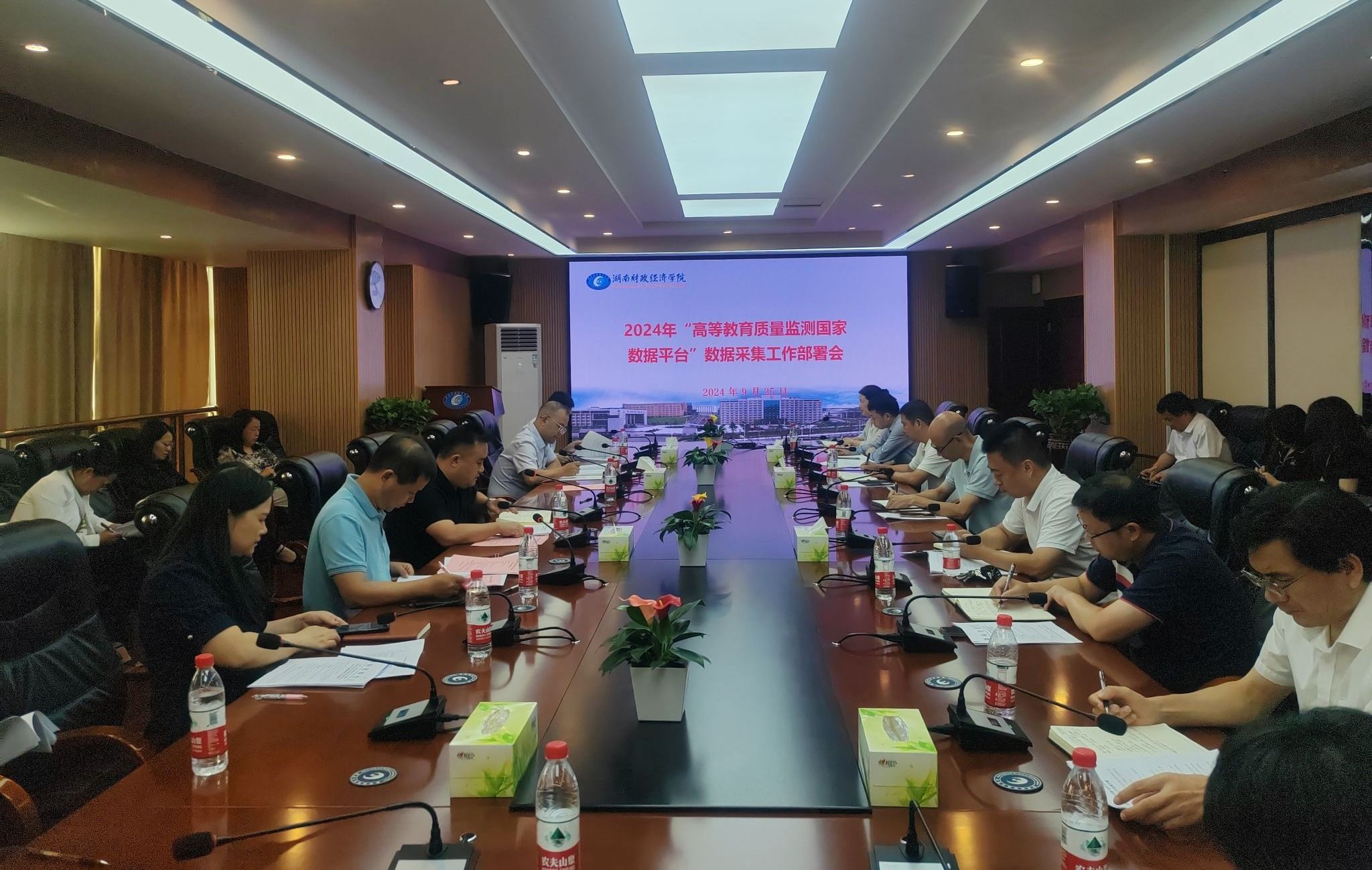 (本网讯)9月25日下午,学校在办公楼715会议室召开2024年教育部高等教育质量监测国家数据平台数据采集工作会议。副校长潘爱民、相关职能部门和各二级学院负责人参加会议。会议由教学质量监控与评估中心主任邓永红主持。会议现场邓永红就2024年数据采集工作的规范流程与时间节点、有关核心数据采集填报的注意事项与审核要求进行了说明,要求相关单位精准分析教学状态数据,认真填报,按时保质完成工作任务。潘爱民就数据采集工作提出三点要求:...