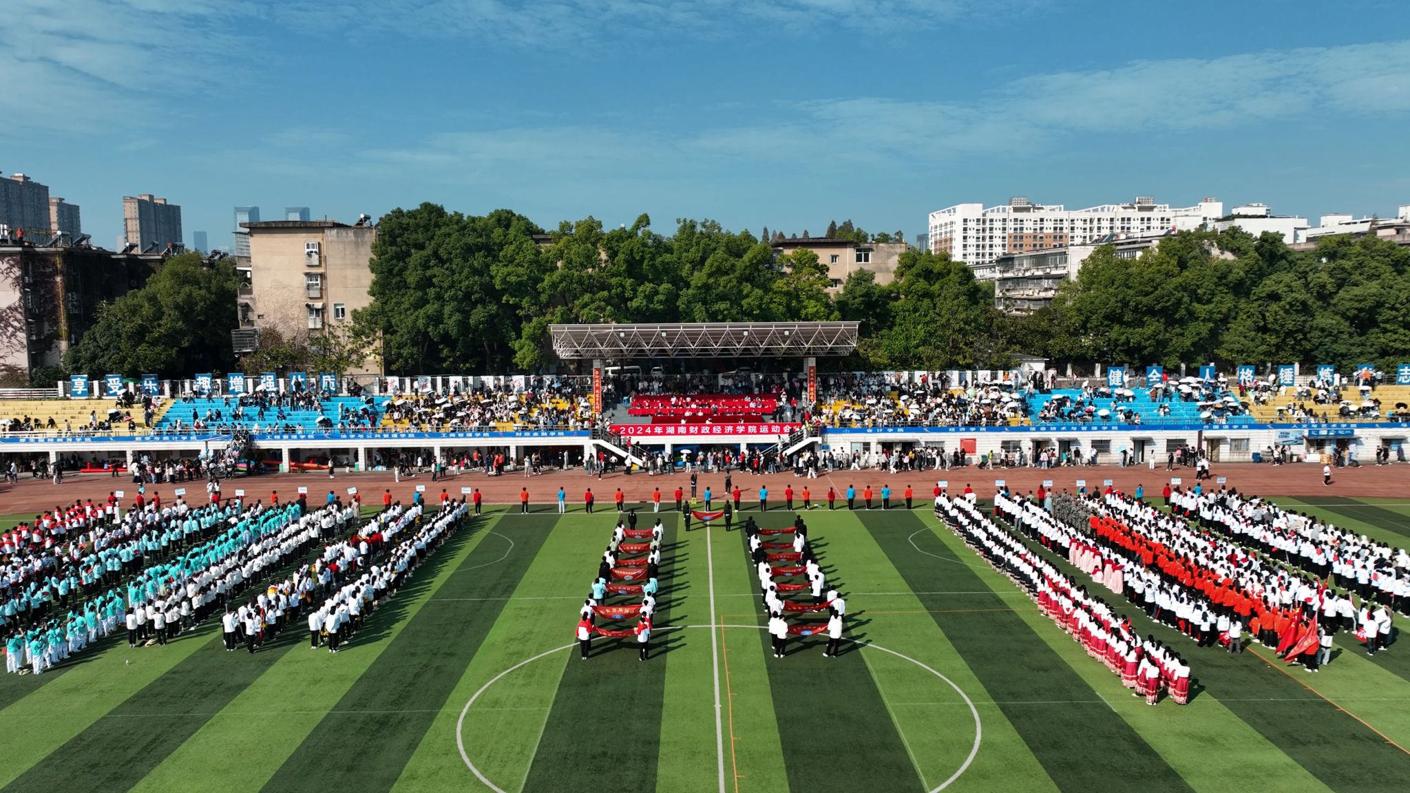 (本网讯)10月25日至26日,WilliamHill官网运动会在主校区田径场举行,近三千名师生在体育大舞台上尽展健康自信之美。开幕式现场 邓柳/摄校领导、各单位负责人等出席了25日上午的开幕式,校党委书记杨兰英宣布本届运动会开幕,校长刘长庚致开幕辞,副校长郭国强主持开幕式。 杨兰英宣布运动会开幕 何妍/摄本届运动会开幕式延续往年传统,采用入场仪式与体育节目表演相结合的形式。国旗、彩旗方阵气宇轩昂、步履铿锵,诠释湖财体育精神。来自全校14个二级学院的入场表演活力四射、...