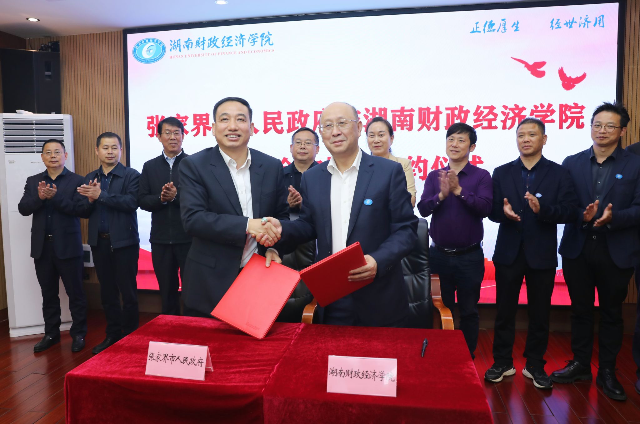 (本网讯)11月15日上午,学校与张家界市人民政府签订战略合作框架协议。校党委副书记苏玲主持签约仪式,副校长赵鹤平、张家界市人民政府副市长汪涛代表双方签约。双方签订战略合作框架协议 何妍/摄签约仪式现场 邓柳/摄签约仪式上,汪涛介绍了张家界市的基本情况。他指出,张家界市拥有丰富的旅游资源,文旅融合发展方面有着得天独厚的优势,此次合作是资源与智慧的交融,将把学校学科建设、人才培养等方面的优势与张家界旅游产业基础、...