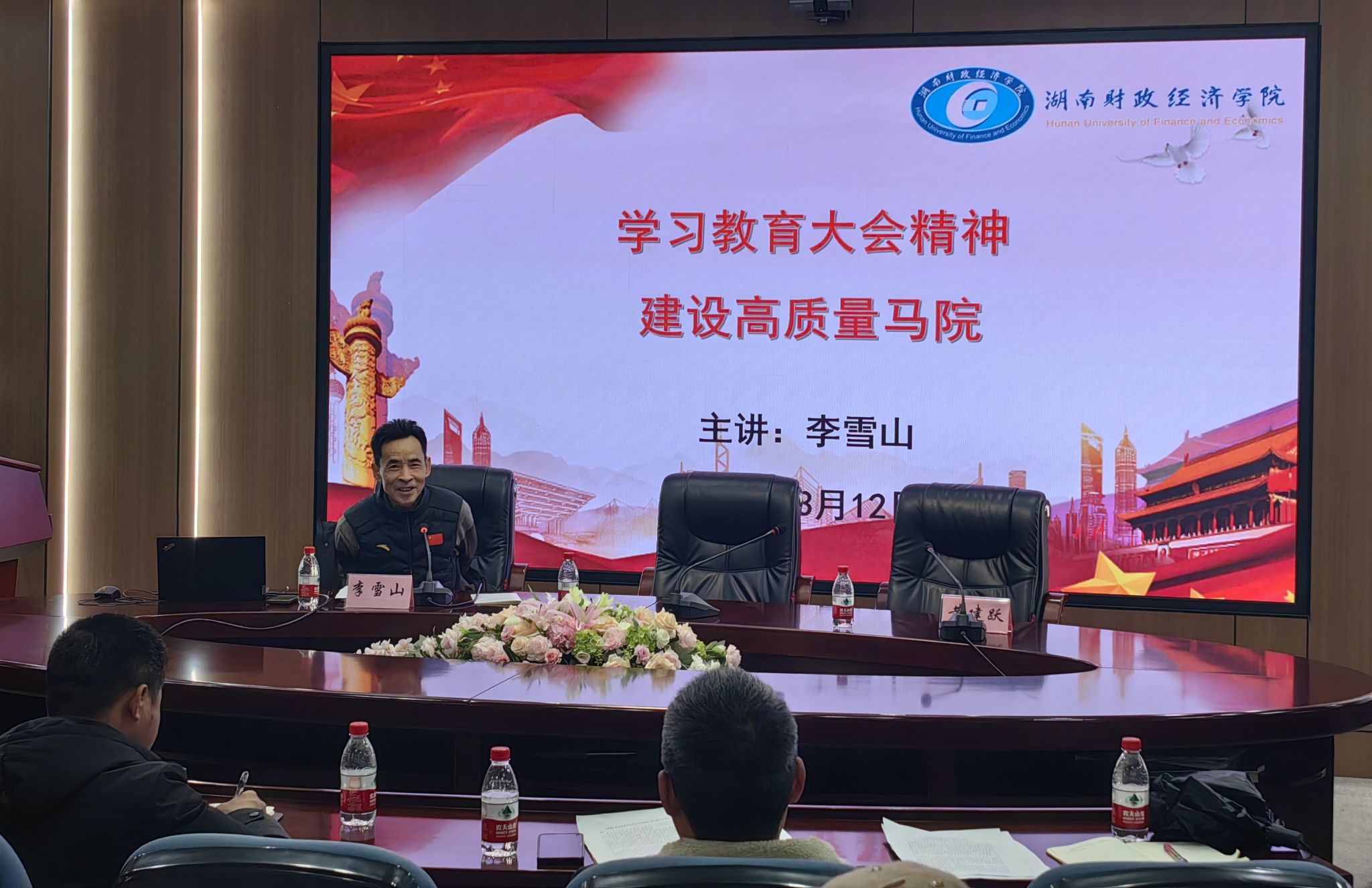 (本网讯)3月12日下午,校纪委书记李雪山在办公楼五楼视频会议室为马克思主义学院全体师生党员讲授“学习贯彻教育大会精神,推进高质量马院建设”专题党课。李雪山紧密围绕习近平总书记在全国教育大会上的重要讲话精神和《教育强国建设规划纲要(2024–2035年)》,同与会党员进行了深入交流。他指出,思政课是落实立德树人根本任务的关键课程,必须始终站在为党育人、为国育才的高度回答好“强国建设,教育何为”的时代命题;必须深耕教育教学改革,...
