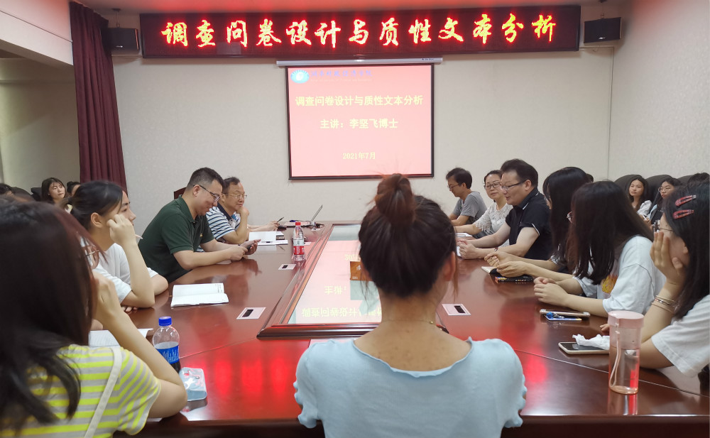 (本网讯)7月2日,公共管理学院邀请湖南工商大学工商管理学院副院长李坚飞在办公楼414会议室作“调查问卷设计与质性文本分析”专题讲座。讲座由院长宁国良主持,本院及其他学院感兴趣的师生聆听了讲座。讲座现场李坚...