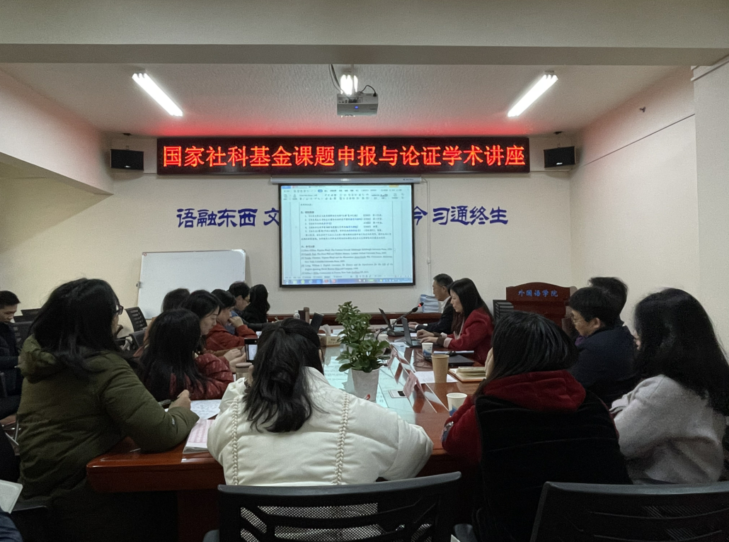 (本网讯)1月16日,外国语学院邀请广东外语外贸大学黄忠廉教授在学校办公楼315会议室作“国家社科基金申报与论证”专题讲座。讲座由学院副院长肖平飞主持,科研处处长李勇辉、人文与艺术学院副院长林铁以及相关二级...