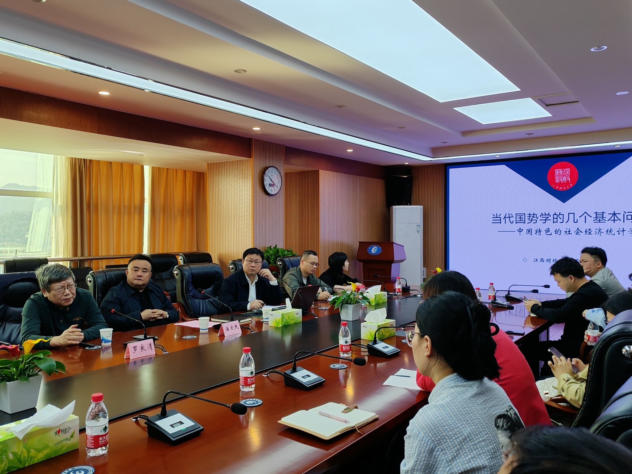 (本网讯)10月23日上午,应数学与统计学院和科研处的邀请,江西财经大学统计学学科带头人、国务院政府特殊津贴专家、国家社科基金重大项目首席专家、教育部高等学校经济类教学指导委员会委员罗良清教授在办公楼715会议室作了题为“当代国势学的几个基本问题——中国特色的社会经济统计学”的学术报告。副校长潘爱民主持报告会。讲座现场在报告中,罗良清介绍了国势学的研究对象、研究方法、研究对象、研究基础,就传统国势学特色和新时代国势学特色进行了比较分析,...