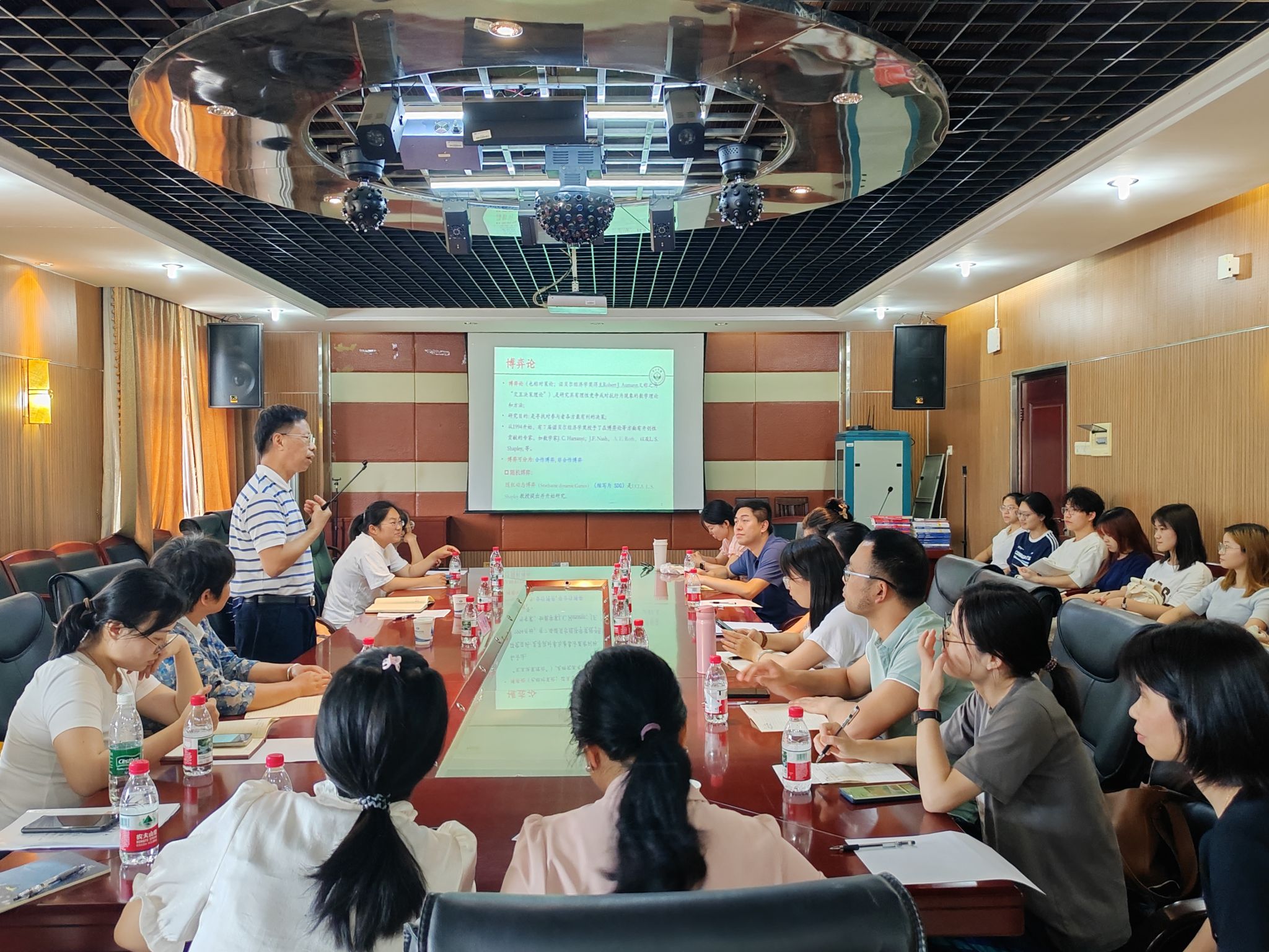 (本网讯)5月16日下午, 应数学与统计学院邀请,中山大学郭先平教授在WilliamHill官网办公楼1014会议室作题为“随机博弈的研究进展与问题”的学术报告。报告会由院长尹向飞主持,学院领导班子成员、青年教师和学生代表参加。报告会现场郭先平以博弈论的基础概念为切入点,围绕博弈模型分类、随机博弈研究进展展开系统讲解。他重点介绍了随机动态博弈中风险灵敏准则、风险概率准则、平均在险值、不完全信息风险度量准则等核心理论,并对理论框架下Nash均衡策略的存在性证明及逼近算法进行细致剖析。...