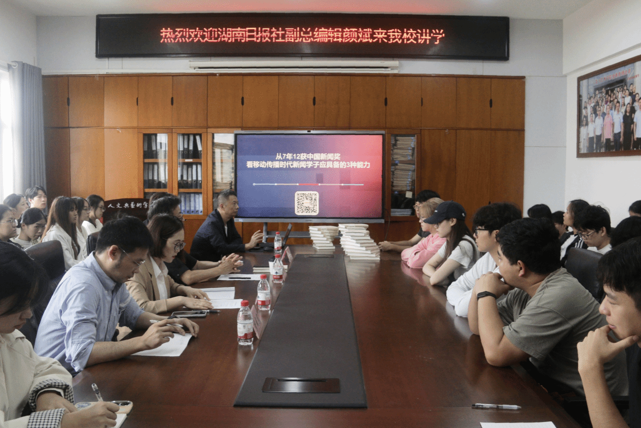 (本网讯)10月15日下午,湖南日报社副总编辑颜斌应邀来校,为人文与艺术学院师生带来题为“从7年12获中国新闻奖看移动传播时代新闻学子应具备的三种能力”的讲座。讲座由学院副院长王美霞主持,院长林铁,网络与新媒体、汉语言文学专业师生以及星辰学生通讯社社员参加。讲座现场颜斌结合30余年新闻实践与12次荣获中国新闻奖的深厚积淀,系统阐述了移动传播时代新闻人才应具备的三大核心能力,即发现新闻、表现新闻与实现新闻。他指出,...