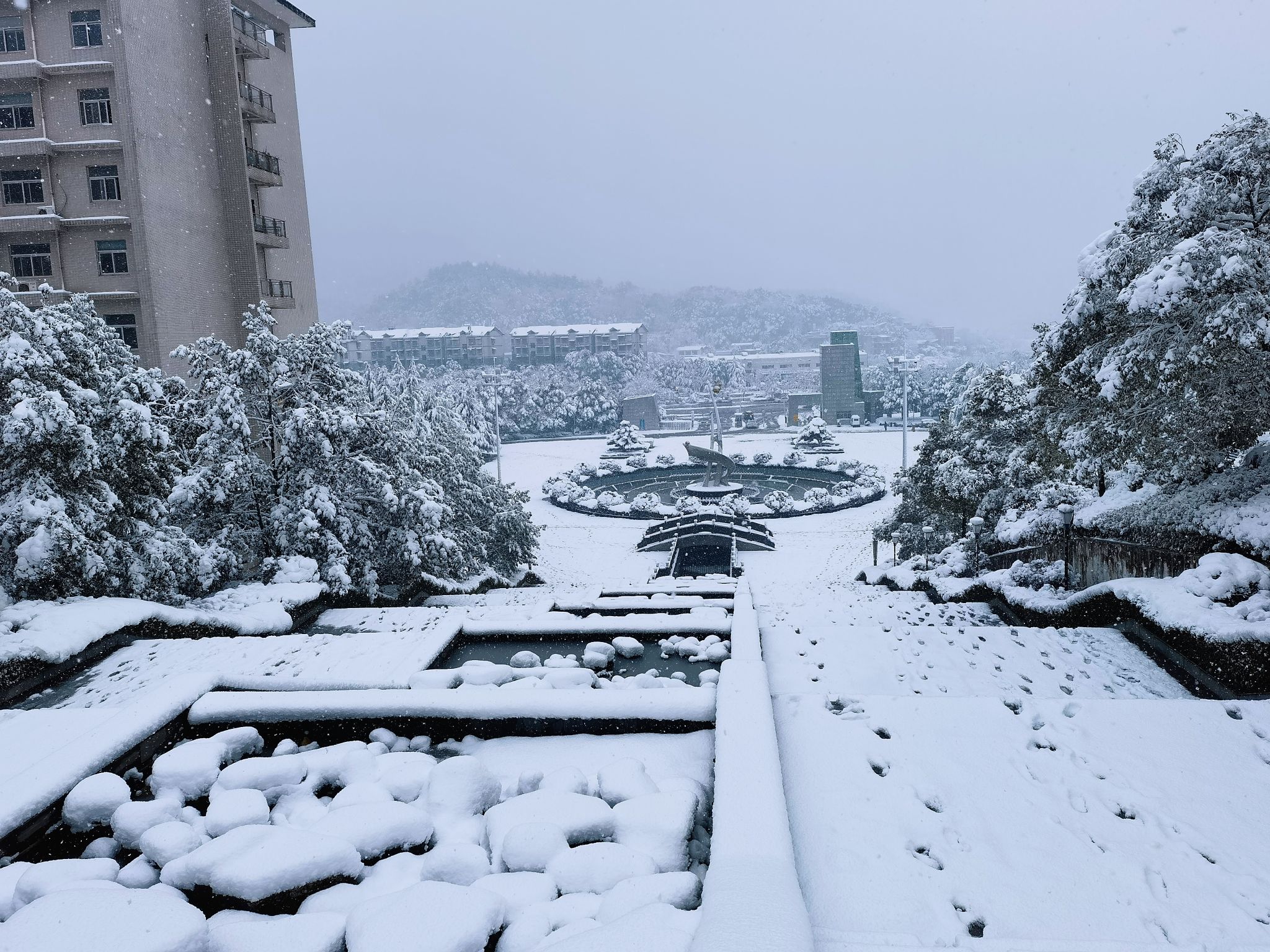 (本网讯)2024年的第一场大雪在众人翘首期待的目光中如约而至。1月21日晚,大雪纷纷扬扬、飘飘洒洒,给美丽的校园裹上了一层纯白的外衣。大雪给师生带来“视觉盛宴”的同时,也给出行、生活带来不便和安全隐患。