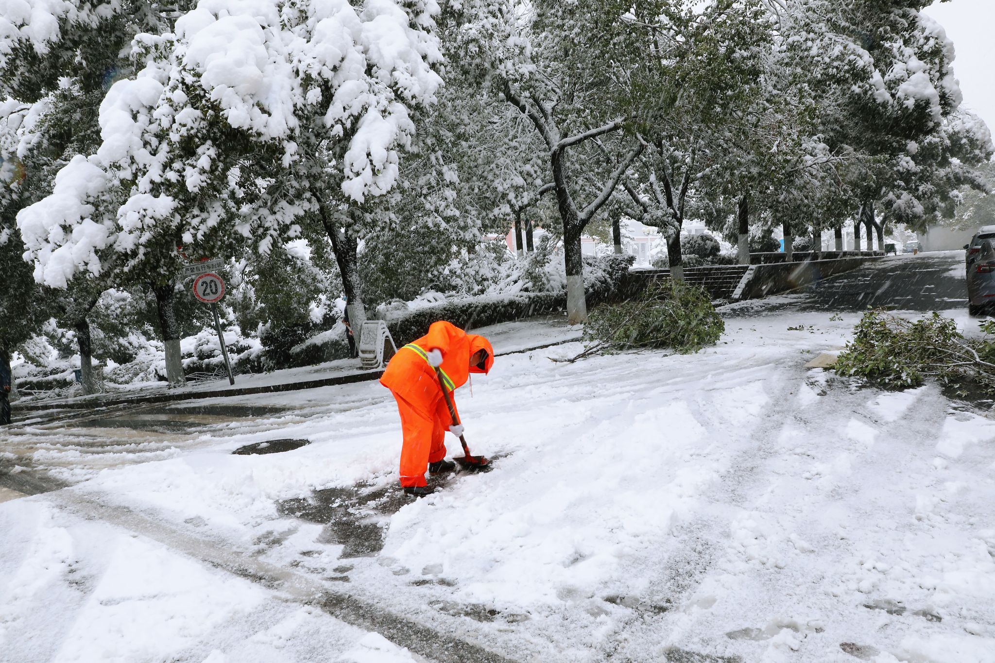 环卫工人进行冰雪清扫工作 何妍/摄