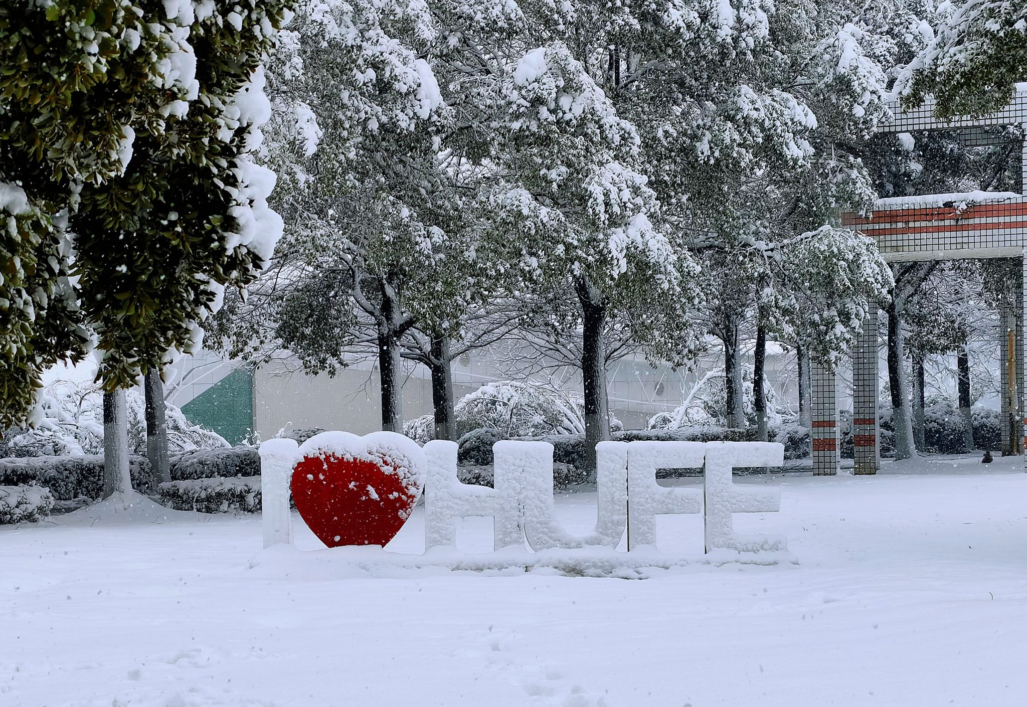 披上“银装”的校园