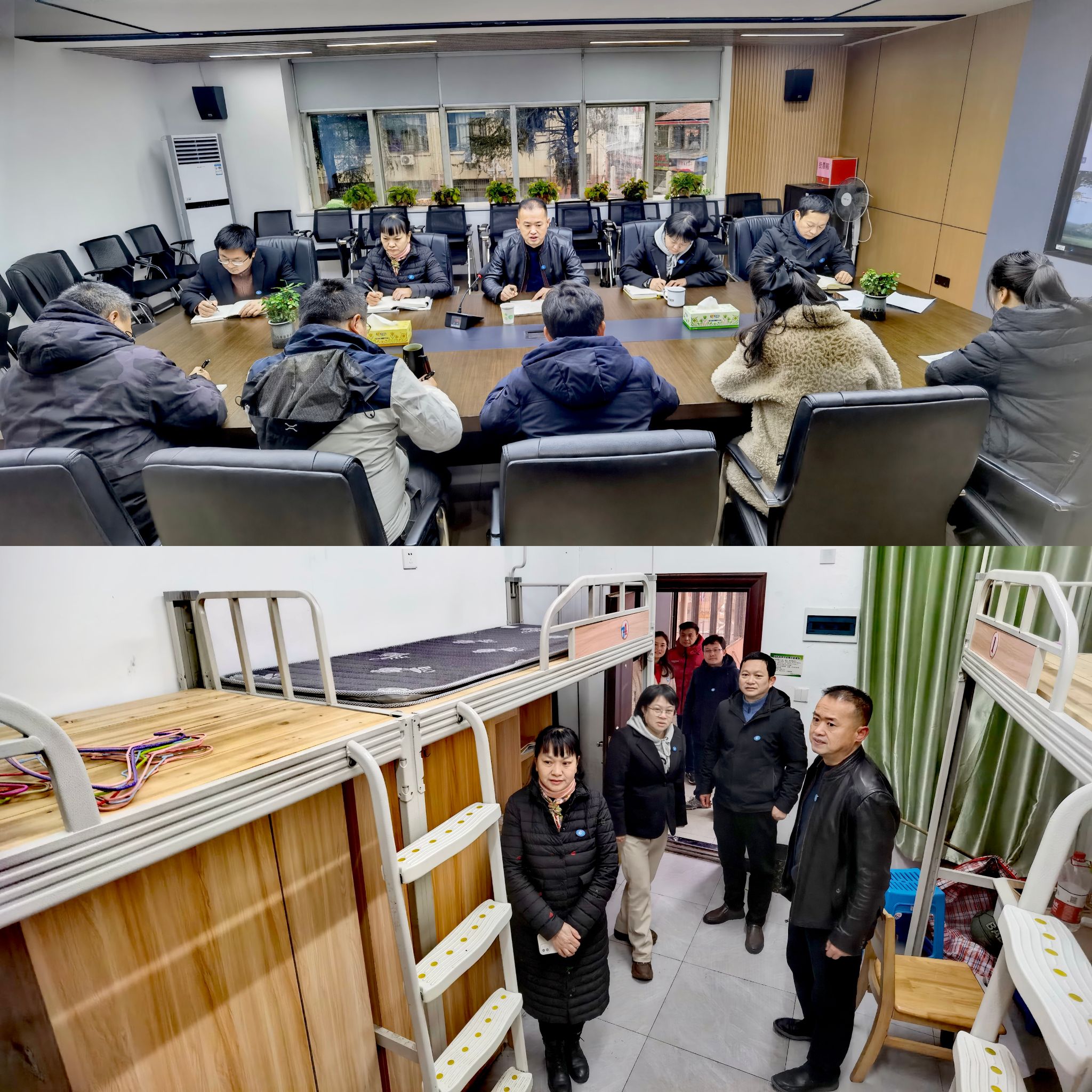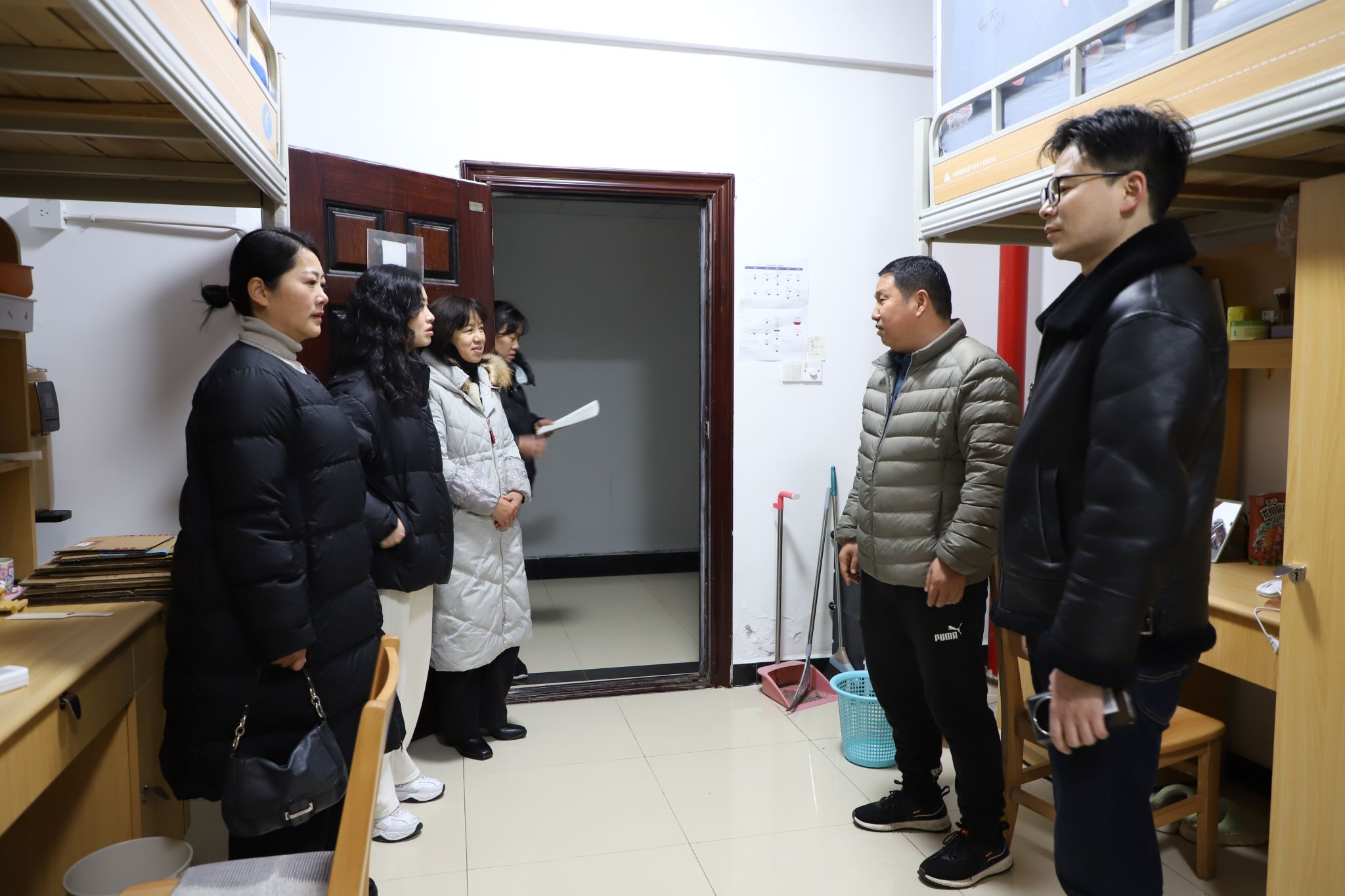 ▲寒假雨雪冰冻天气期间,雷锋学院及时启动应急预案,组织党员干部加强值班值守,实时排查水管爆裂、树枝断裂等财产损坏及安全问题,把相关损失降到了最低。2月22日,雷锋学院召开开学工作会议,对开学各项工作进行了部署。班子成员带领各科室人员对开学准备及安全生产工作进行了全面检查。图为雷锋学院召开开学工作会议、班子成员带领各科室人员深入学生宿舍检查 李静/供图