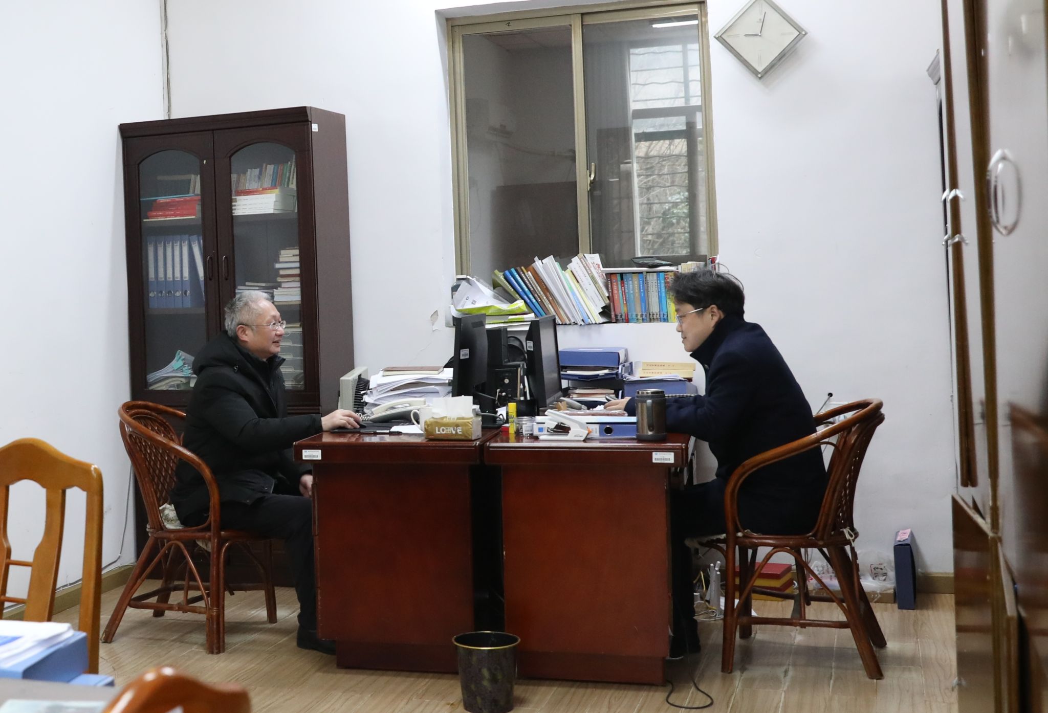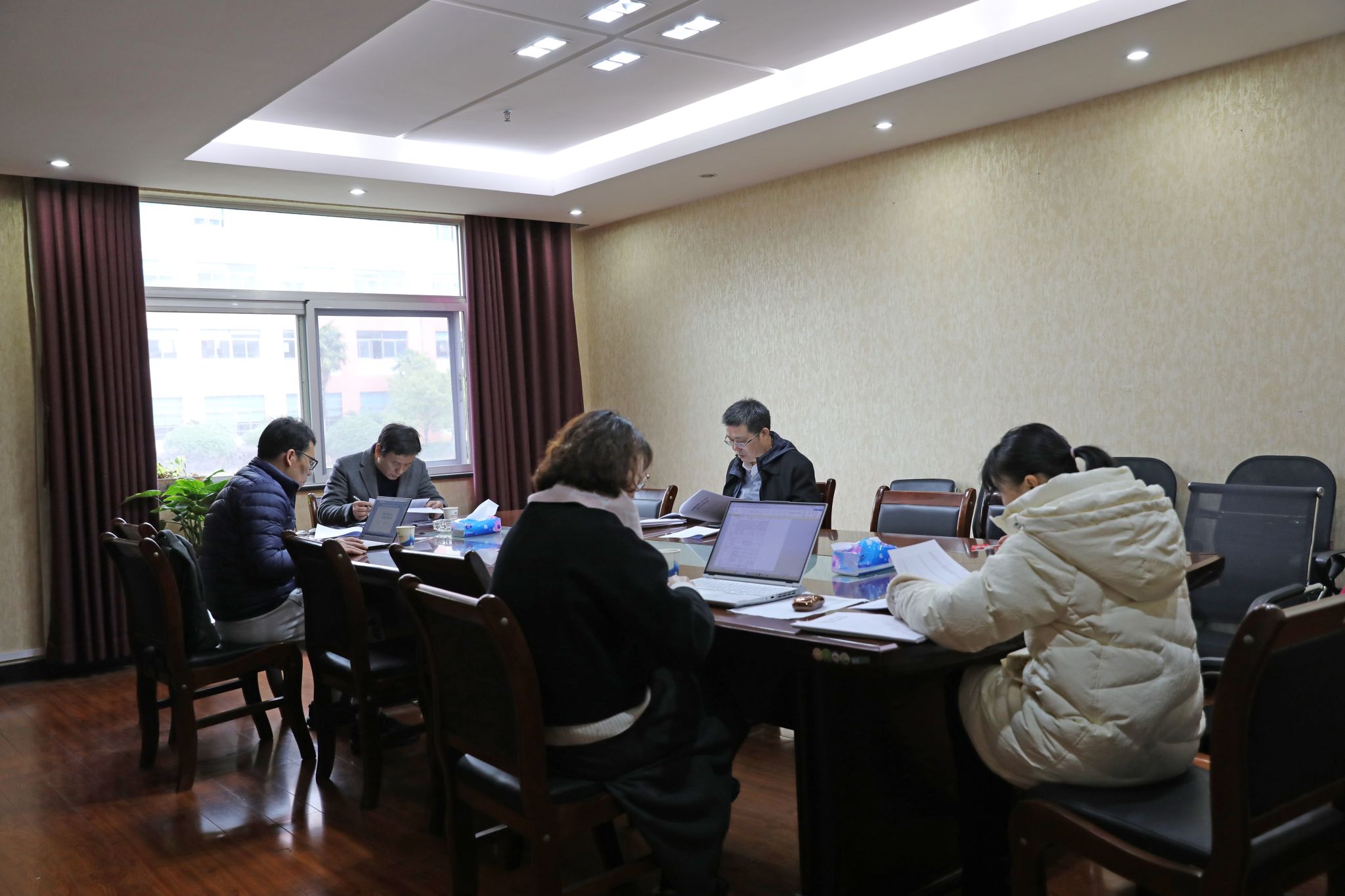 ▲2月20日,经济学院召开申硕材料修改会,学院主要负责人与院申硕材料准备小组成员共同就申硕材料进行检查校对,对有问题的材料现场修订,确保学院申硕材料准备工作高质量完成。图为经济学院召开申硕材料修改会 苗龙/摄