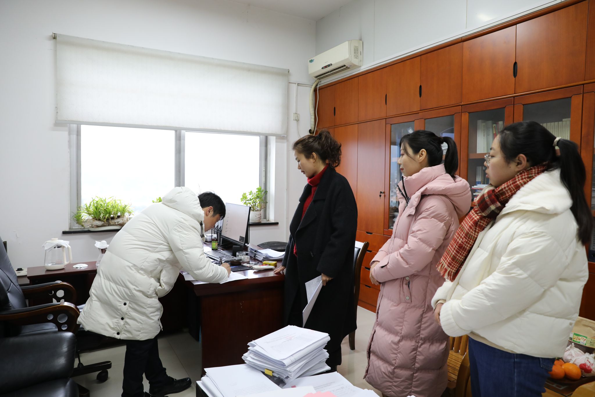 ▲寒假期间,财务处为做好各项资金保障工作加班加点。2月19、20日,财务处工作人员加班整理2024年专项债申报材料。图为财务处工作人员整理专项债申报材料 曹松林/摄