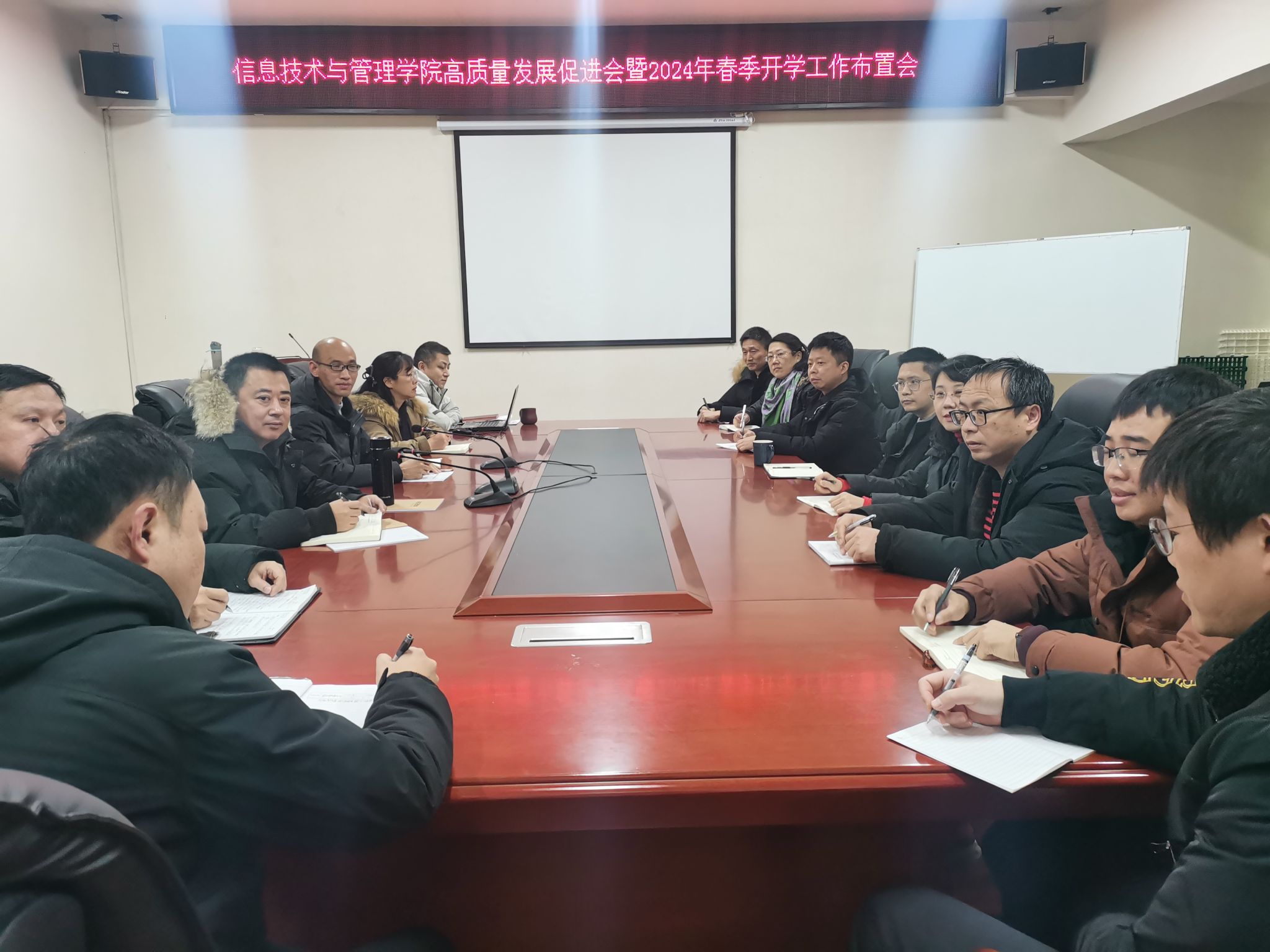 ▲2月22日,信息技术与管理学院召开高质量发展促进会暨2024年春季开学工作布置会,强调要迅速调整归位,坚定信心,抖擞精神,展现“开年就开跑”的新气象,彰显新作为,谱写学院和学校高质量发展新篇章。图为信息技术与管理学院召开高质量发展促进会暨2024年春季开学工作布置会 王惠星/摄