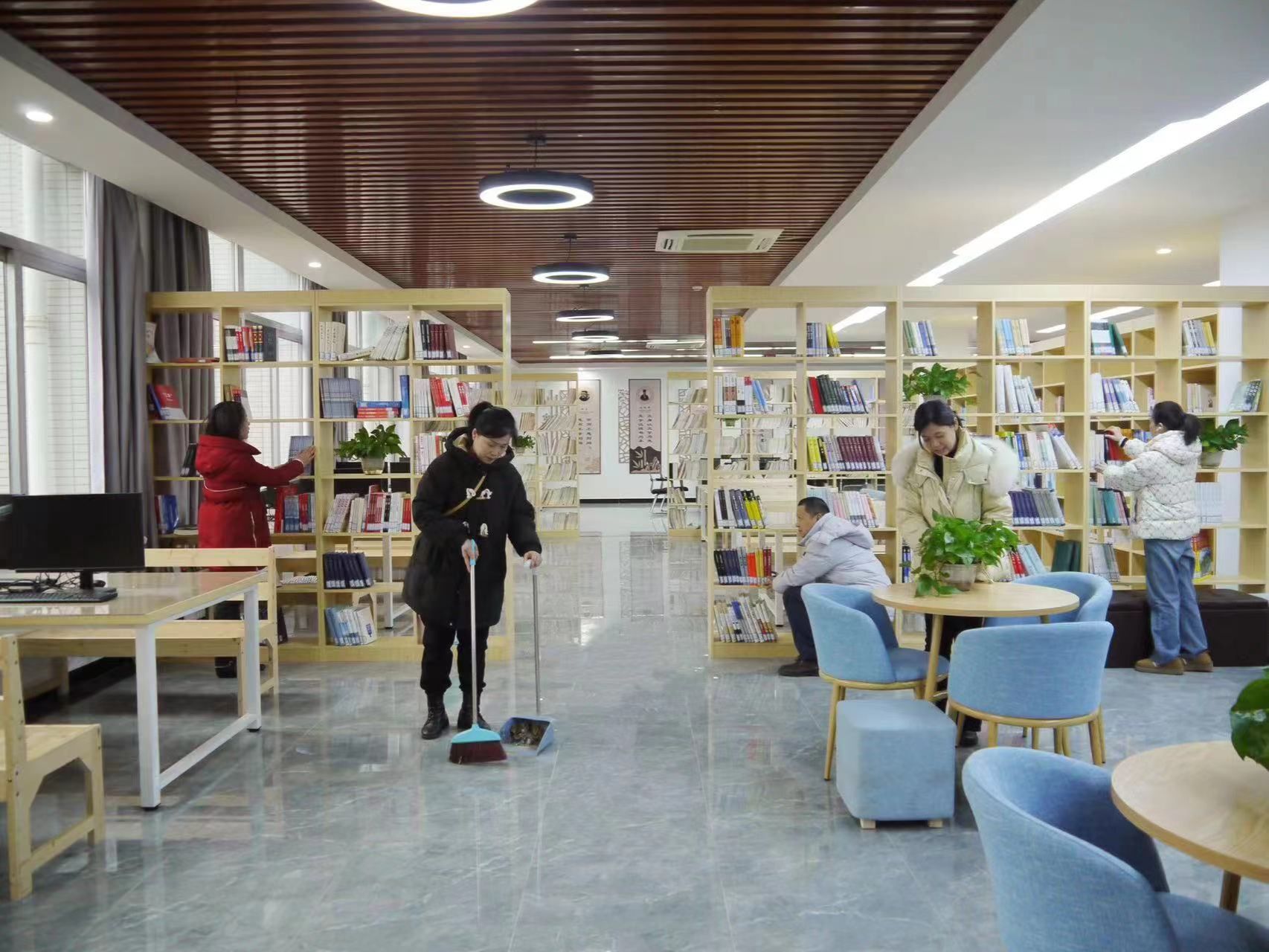 ▲新学期,新气象。图书馆领导班子带领工作人员深入到阅览室、自习室和寄存室等场所,对防火、用电和用水等安全设施进行全面检查,积极整理书架、清理场地,为读者营造一个舒适优雅的学习环境。全体馆员以全新的姿态、昂扬的精神做好开学准备工作。图为图书馆工作人员整理书架、清理场地 饶志英/供图