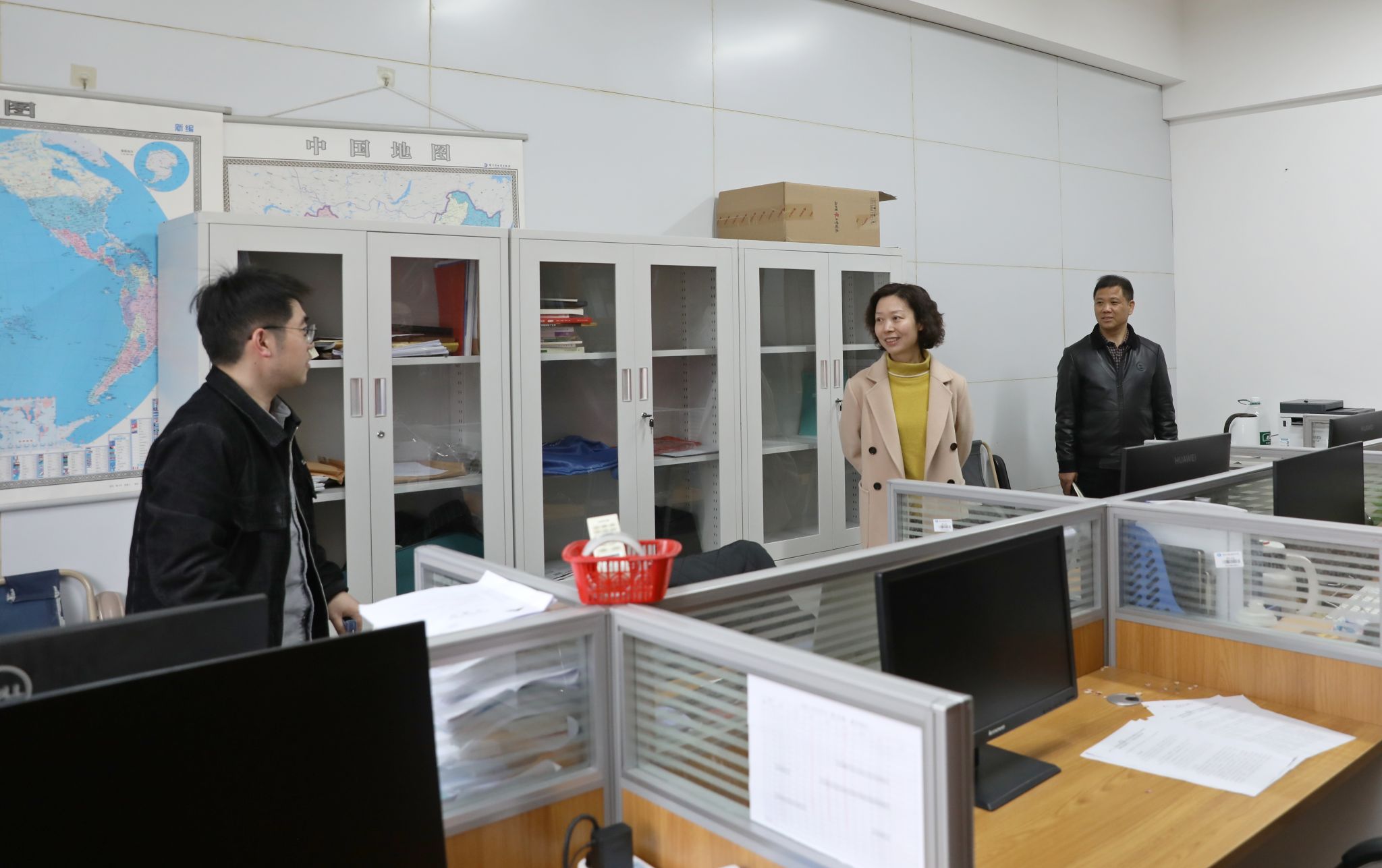 杨兰英一行通过查、谈、看相结合的方式,对经济地理学院、经地科技发展有限公司、档案馆的办公场所、文化展板和实训基地等进行了解,就具体问题与学院教师代表和公司技术人员进行了深入细致的沟通交流。