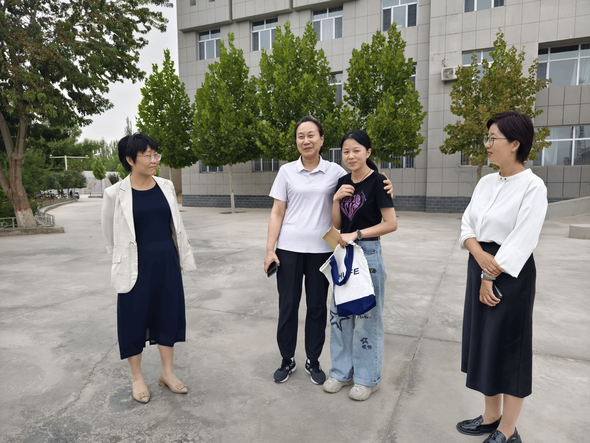 苏玲(中)一行看望慰问学校赴图木舒克市西部计划志愿者
