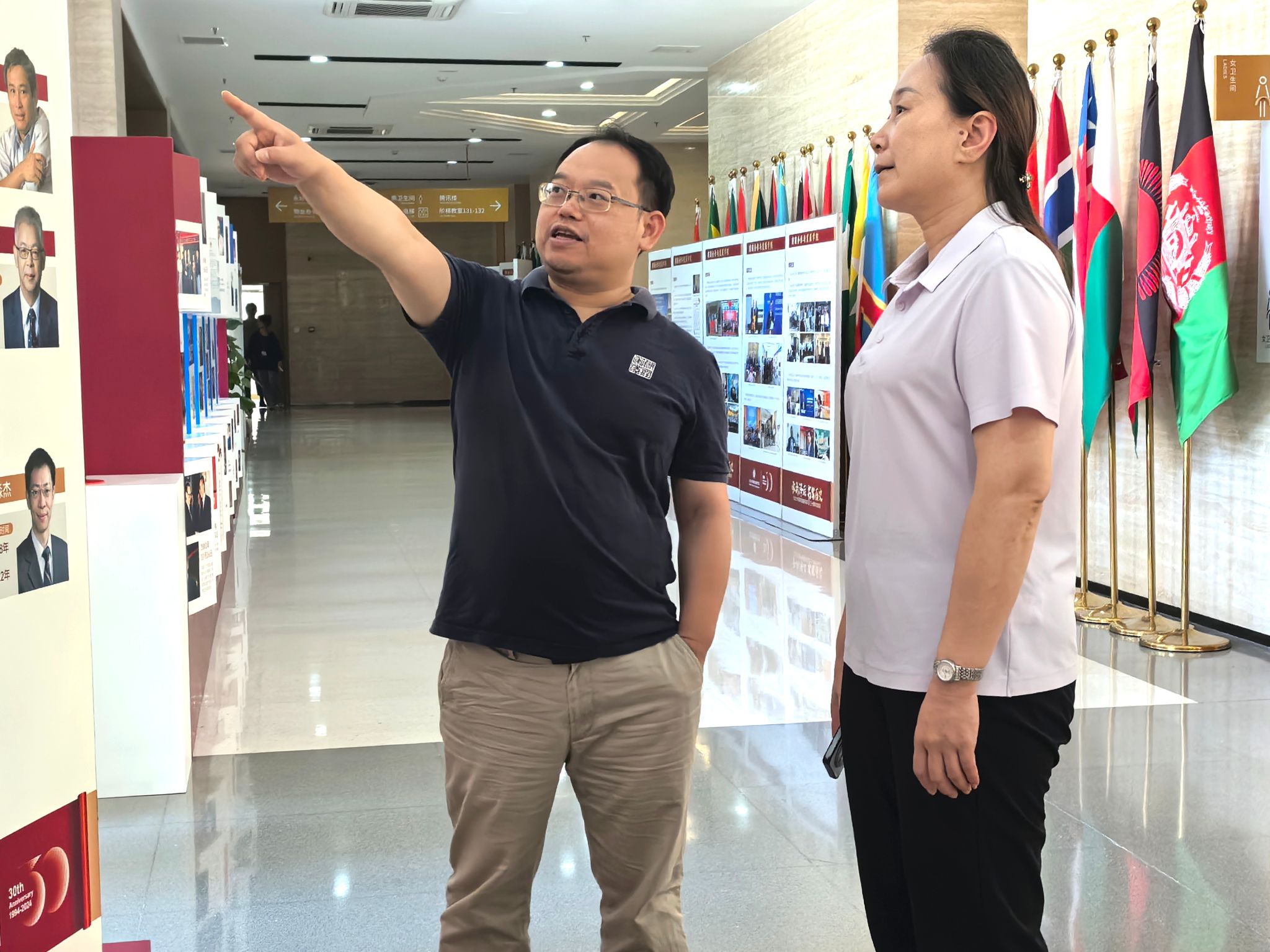 苏玲一行参观了北京大学国家发展研究院、南南合作与发展学院的办学成果展及文化墙,校友工作成就展和活动场所,感受其特有的深厚学院文化,详细了解其校友品牌活动、校友基金管理情况等。