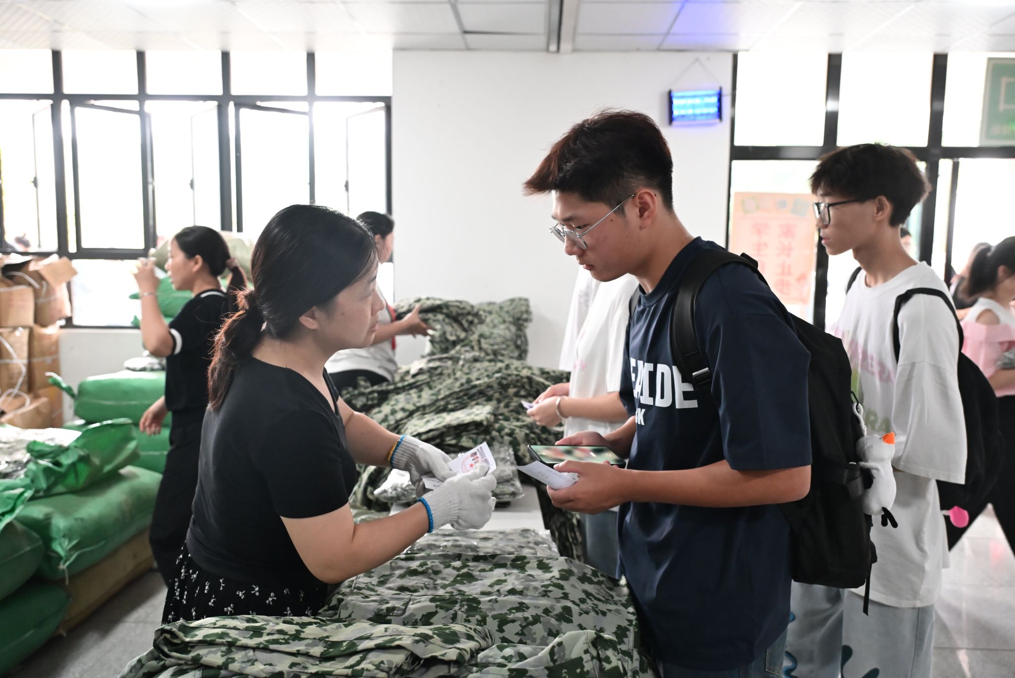 新生领取军训服装 田雅丹/摄