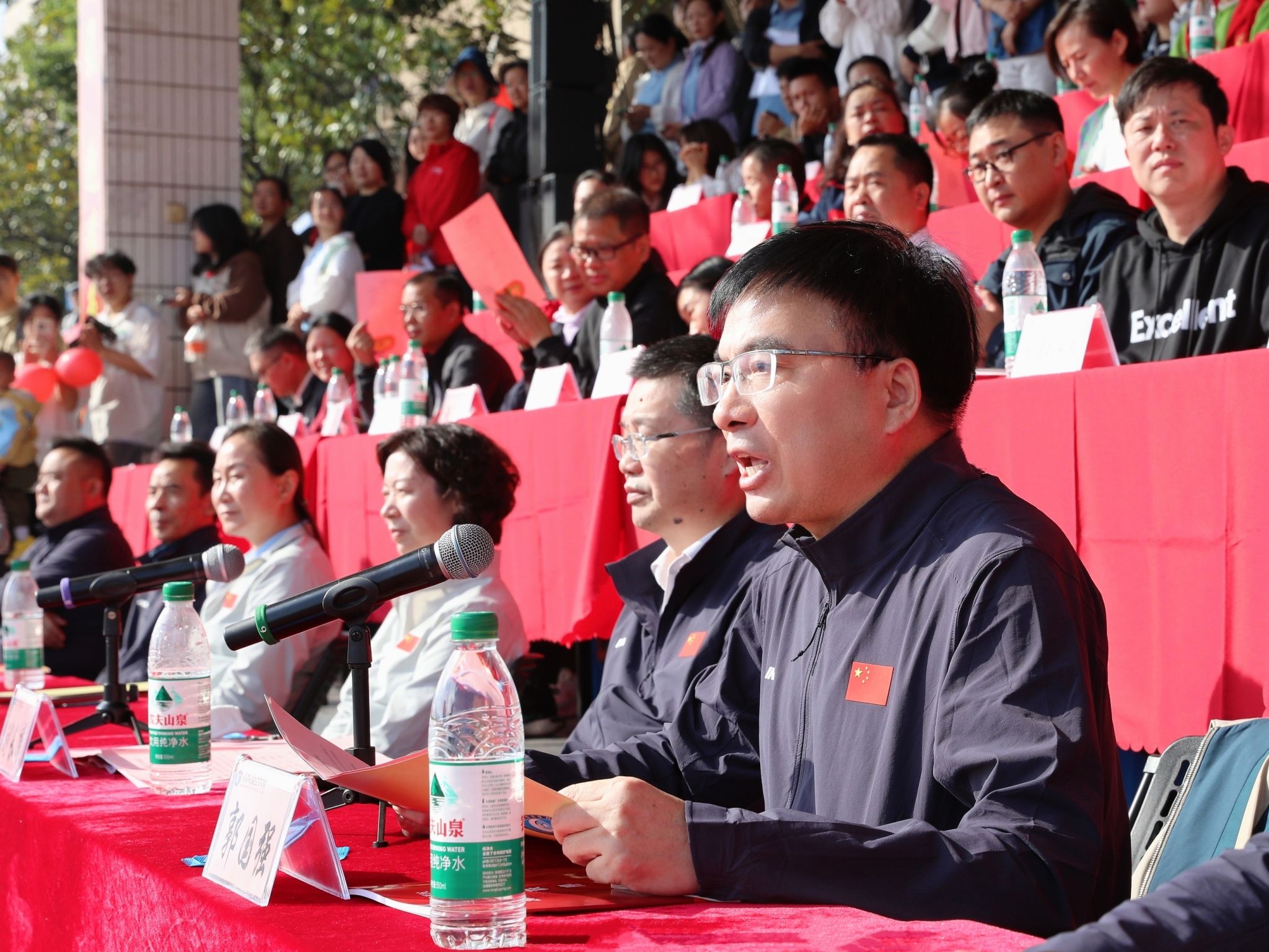 杨兰英宣布运动会正式开幕,烟花齐绽,全体与会领导一起活力“开跑”,点燃了现场等待比赛运动员的热情。