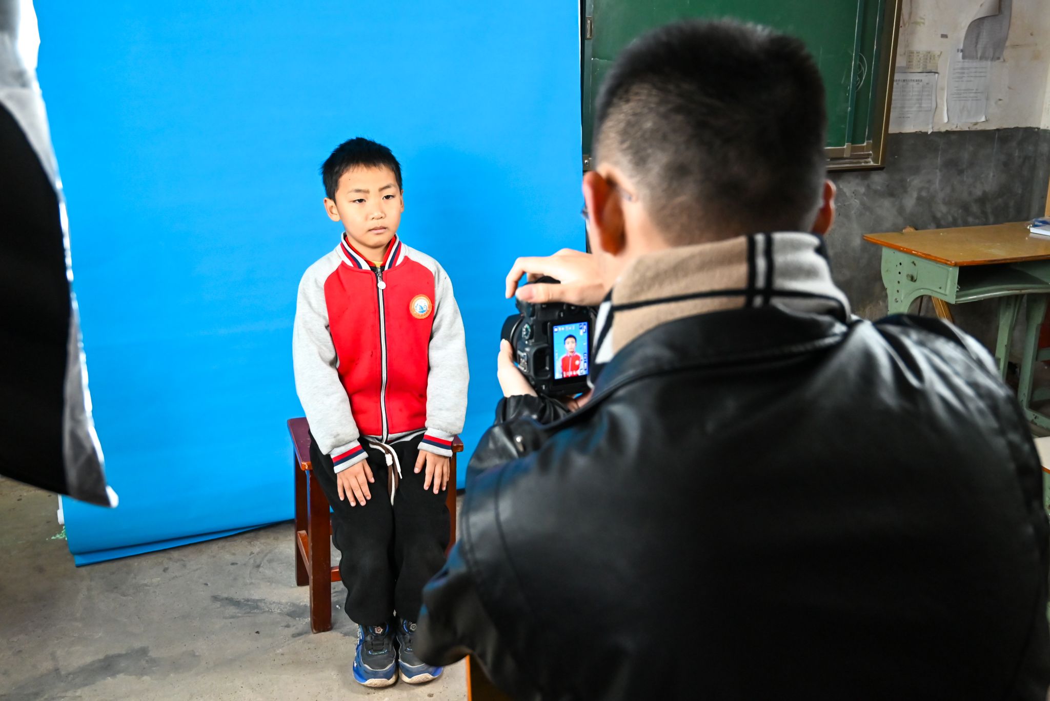 12月10日,在娄底市双峰县杏子铺镇江口村大塘小学的一间教室里,来自学校宣传思想工作队伍的师生志愿者正在为当地村民、村小学生免费拍摄证件照,用镜头记录下他们最美丽的笑容。