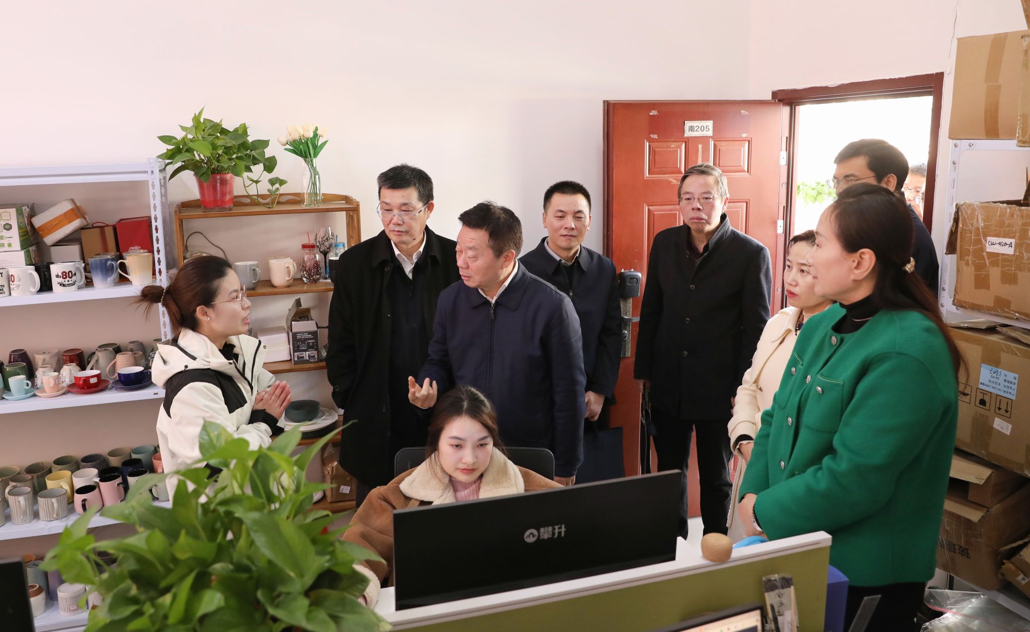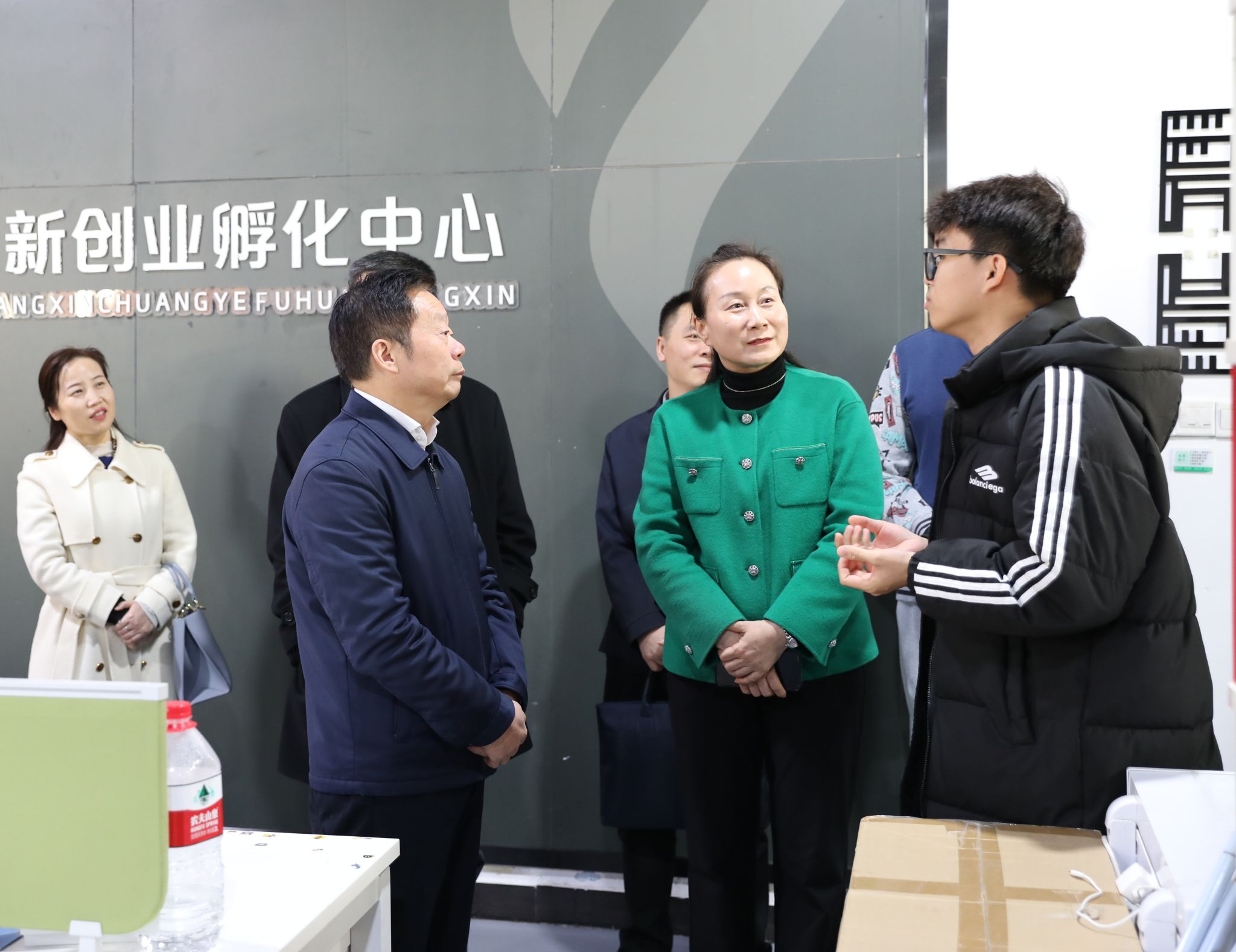 会前,何寄华一行参观了学校九十年财经人才教育史陈展和大学生创业孵化中心,详细了解学校的办学历史,并与创业学生和指导教师亲切交流。