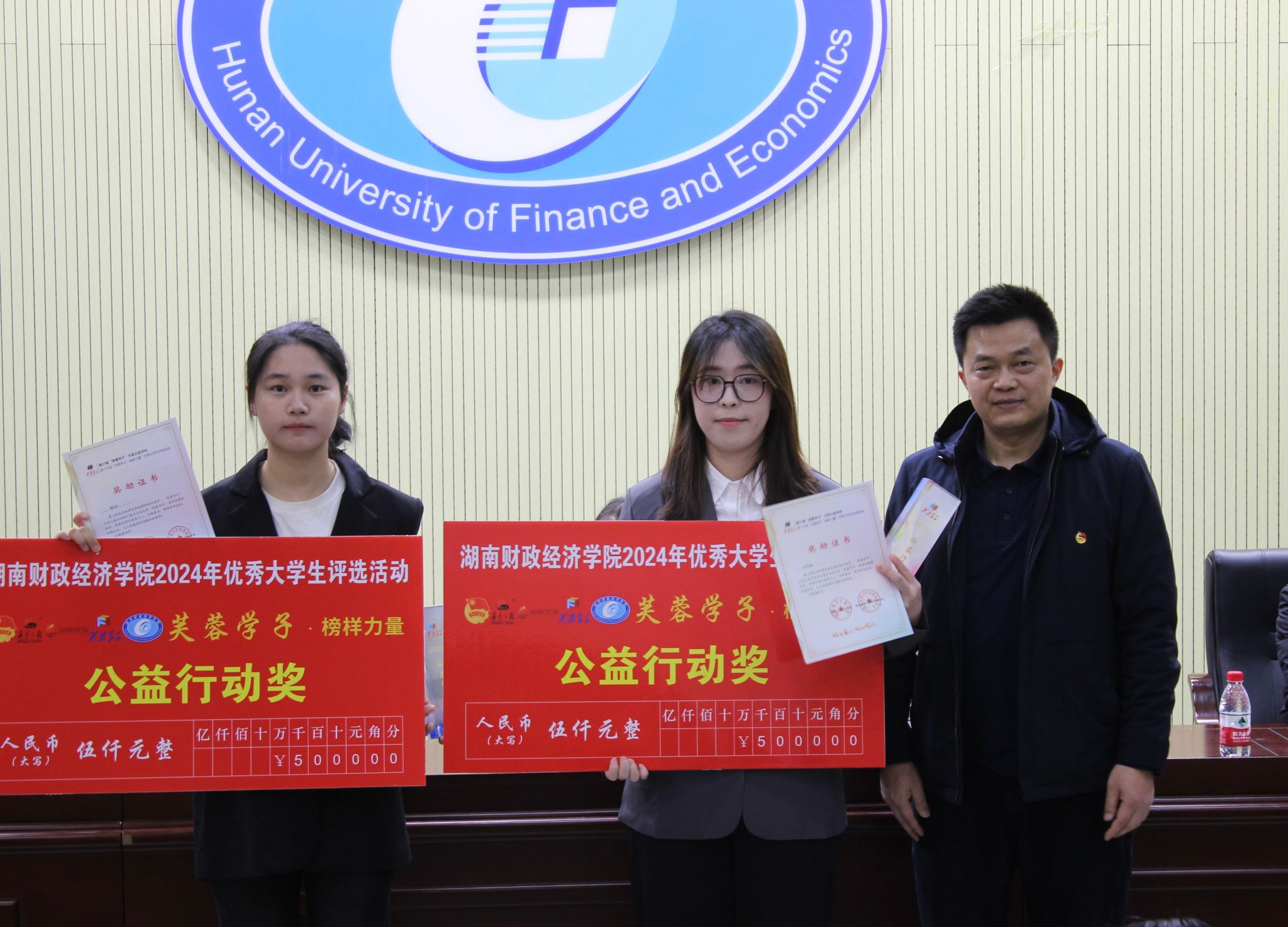 文炳勋宣读了学校《关于表彰第十九届“芙蓉学子·榜样力量”优秀大学生的决定》。茶海之心 伴我“童”行社会实践队、经济地理学院彭志志获芙蓉学子·社会实践奖;会计学院孙艺铭、外国语学院钟子乐获芙蓉学子·公益行动奖;工商管理学院何芯、体育学院曹敏获芙蓉学子·自强不息奖;马克思主义学院李冉、追光青年团队获芙蓉学子·道德风尚奖;数学与统计学院李哲彤、经济学院黄序阳获芙蓉学子·学术创新奖。