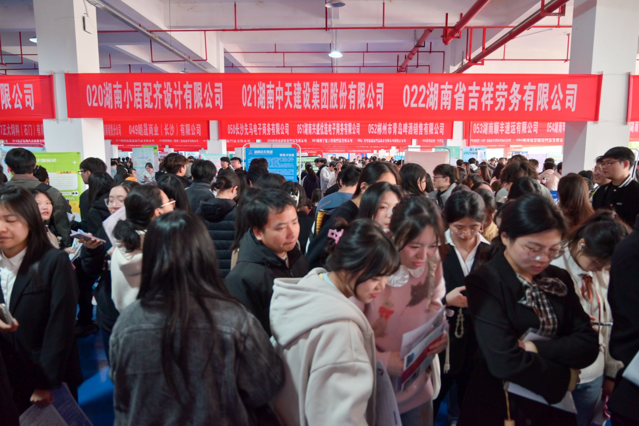 (本网讯)“很好,谢谢!请下一位准备。”在学校主校区体育馆一楼南运动场,用人单位代表正有序组织应聘毕业生进行自我介绍与交流。3月19日下午,由学校主办,信息技术与管理学院、工程管理学院、经济地理学院承办的“梦想启航 成就你我”2025届毕业生春季双选会现场人头攒动,气氛热烈。湖南省教育厅学生处副处长、一级调研员李希敏在学校就业创业中心负责人陪同下,到活动现场调研指导工作。