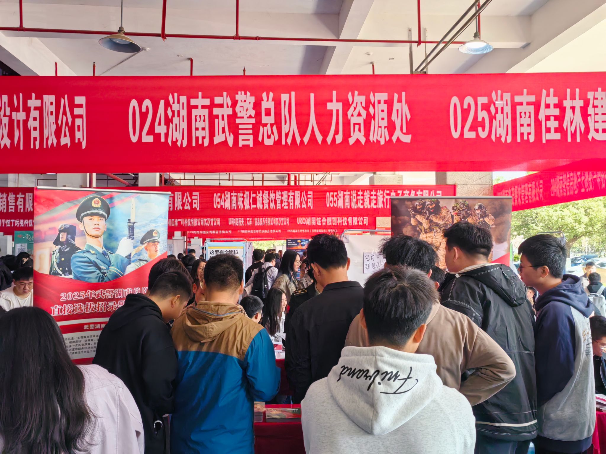 双选会活动现场气氛热烈,秩序井然。李希敏与现场参会企业代表深入交流,询问企业用人需求、岗位技术方向及行业发展动态,并了解毕业生投递简历情况和求职意向。作为本次参会单位的湖南武警总队政治工作部负责人也来到现场,与求职毕业生亲切交谈,详细了解他们的就业意向与规划,勉励他们树立积极就业观,抓住校园招聘机遇,主动出击、积极求职,将个人发展与国家需要、社会需求紧密结合。