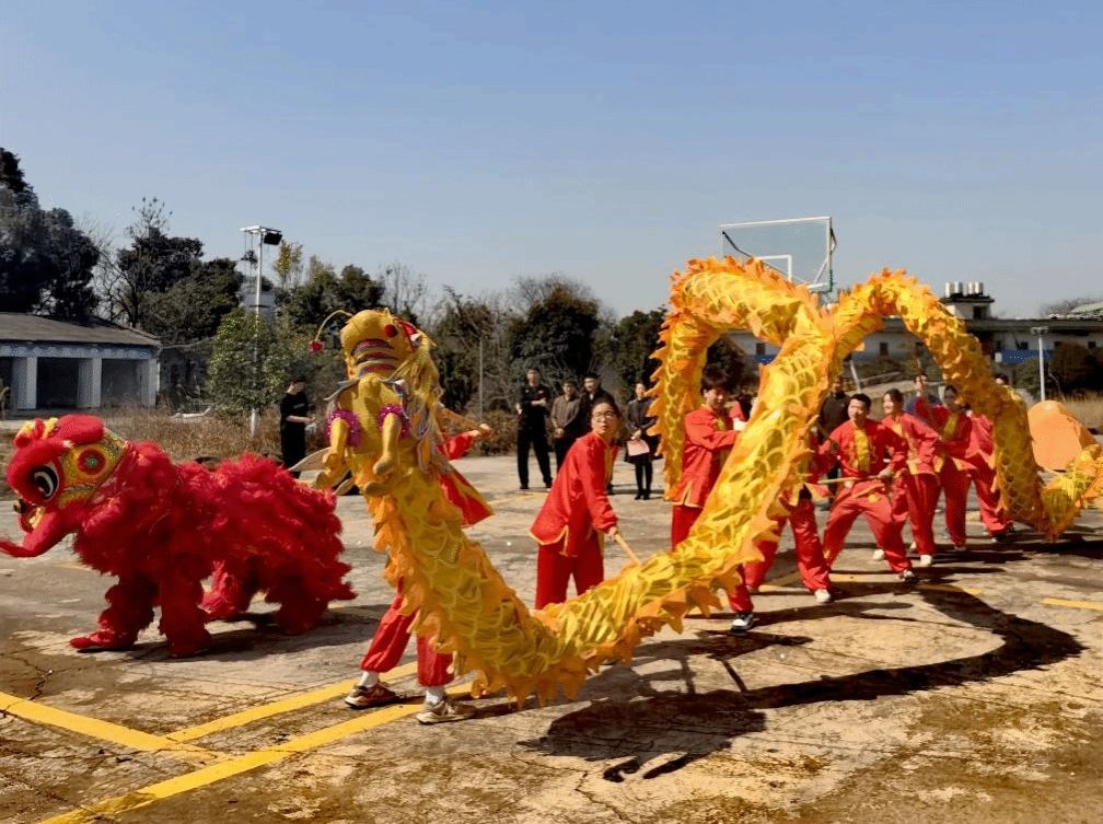 揭牌仪式后,体育学院学生带来的非遗文化表演《龙狮献瑞》将现场气氛推向高潮。彩龙翻腾,醒狮跳跃,“蛟龙得水”“狮跃龙门” 等传统套路精彩呈现,生动诠释了体育精神与文化传承的深度融合,赢得了现场观众的阵阵喝彩。
