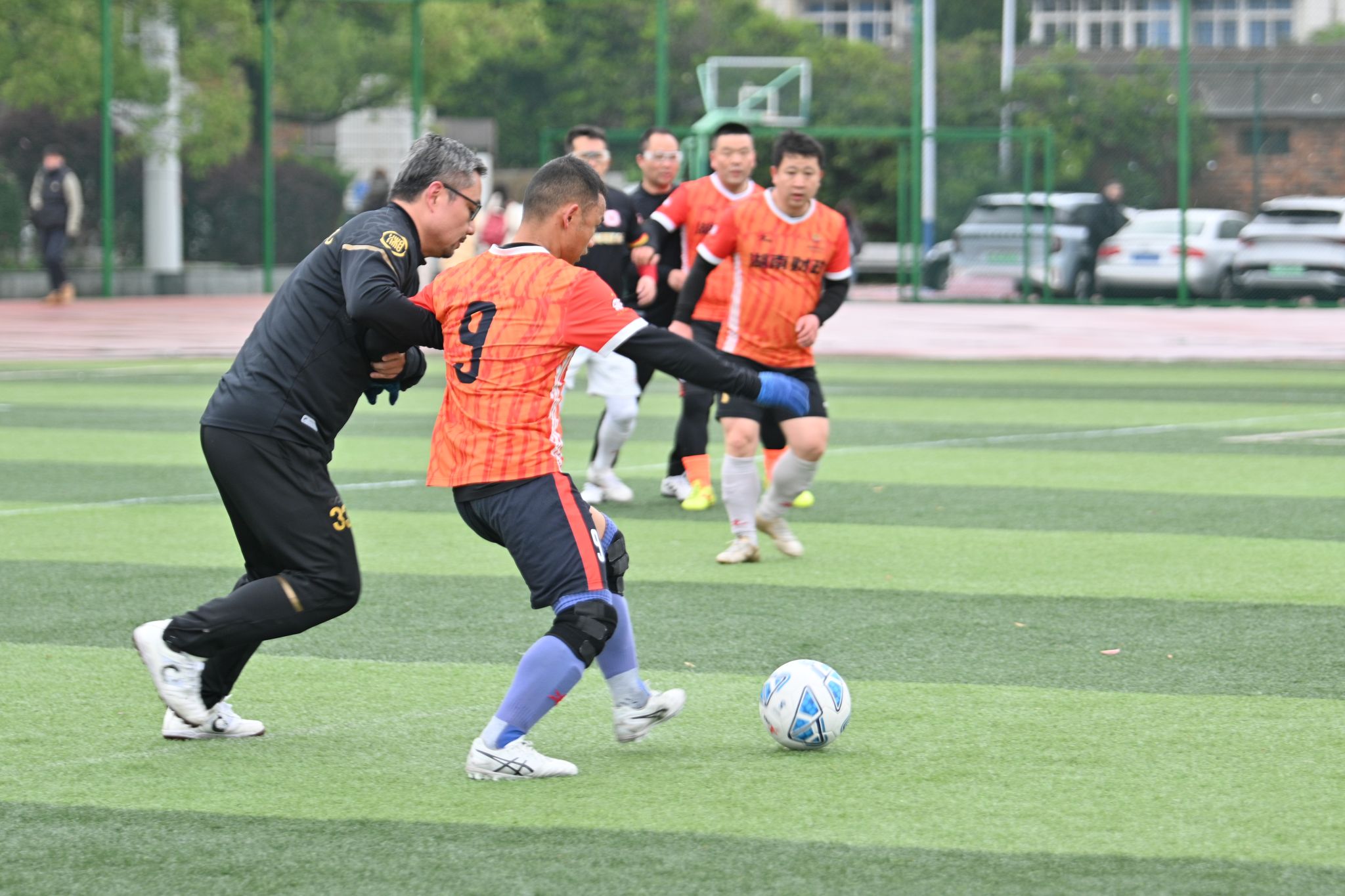 开幕式结束后,两场扣人心弦的揭幕战同步打响。WilliamHill官网教职工足球队成员精神抖擞,迅速投入到激烈的比赛中。球场上,他们身姿矫健,脚步灵活,凭借默契的配合和精湛的球技,一次次突破对方防线。球员们奋力拼抢,不放过任何一个得分机会,进攻、防守、传球、射门,每个动作都充满力量与美感。赛场边,观众们的加油声、欢呼声此起彼伏,现场气氛热烈非凡,为联赛打响了热血第一战。