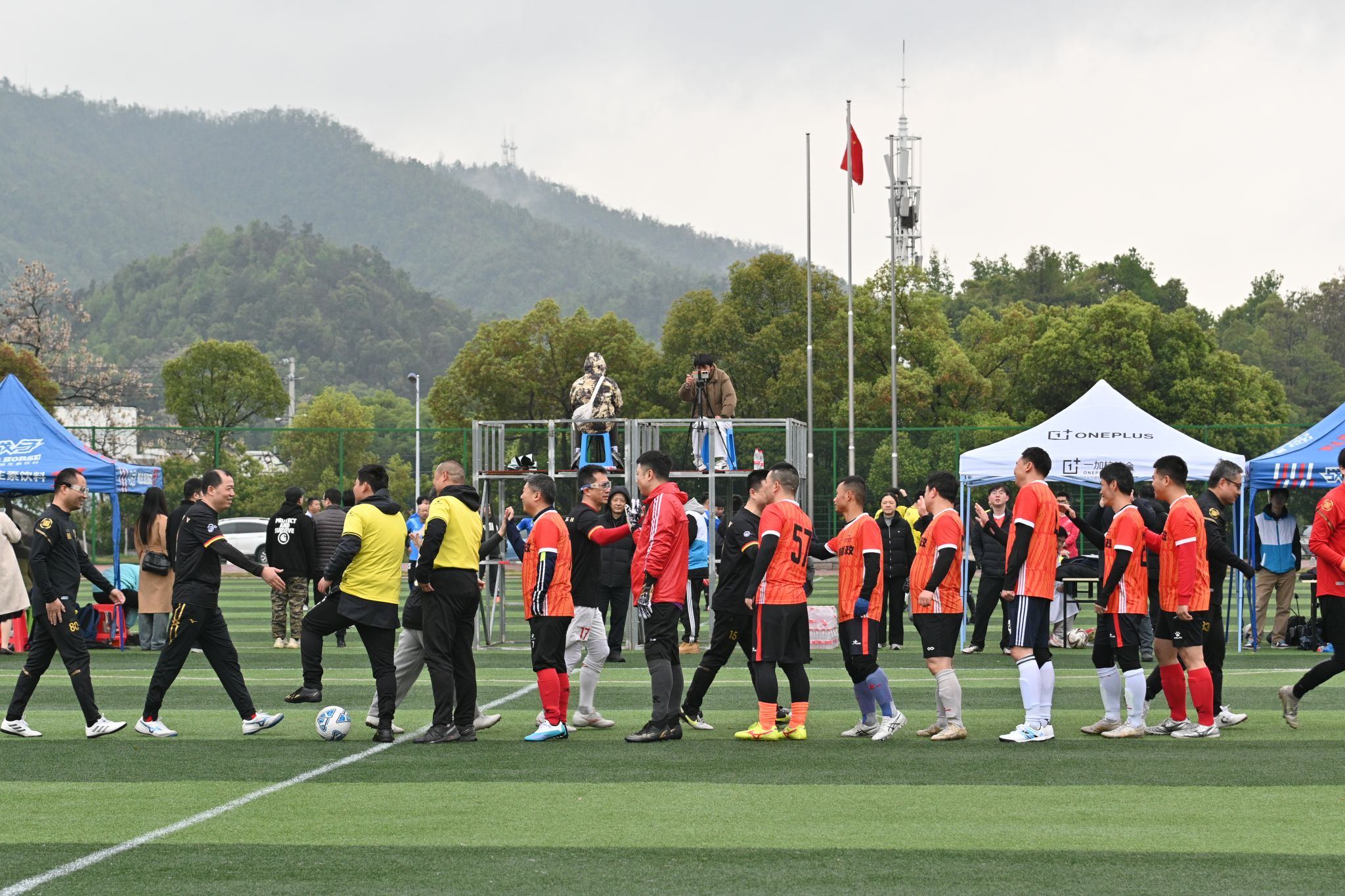 开幕式上,出席的领导嘉宾们移步至球场中央,为赛事开球。在万众瞩目之下,足球划出一道优美的弧线,正式吹响了本届联赛的冲锋号。