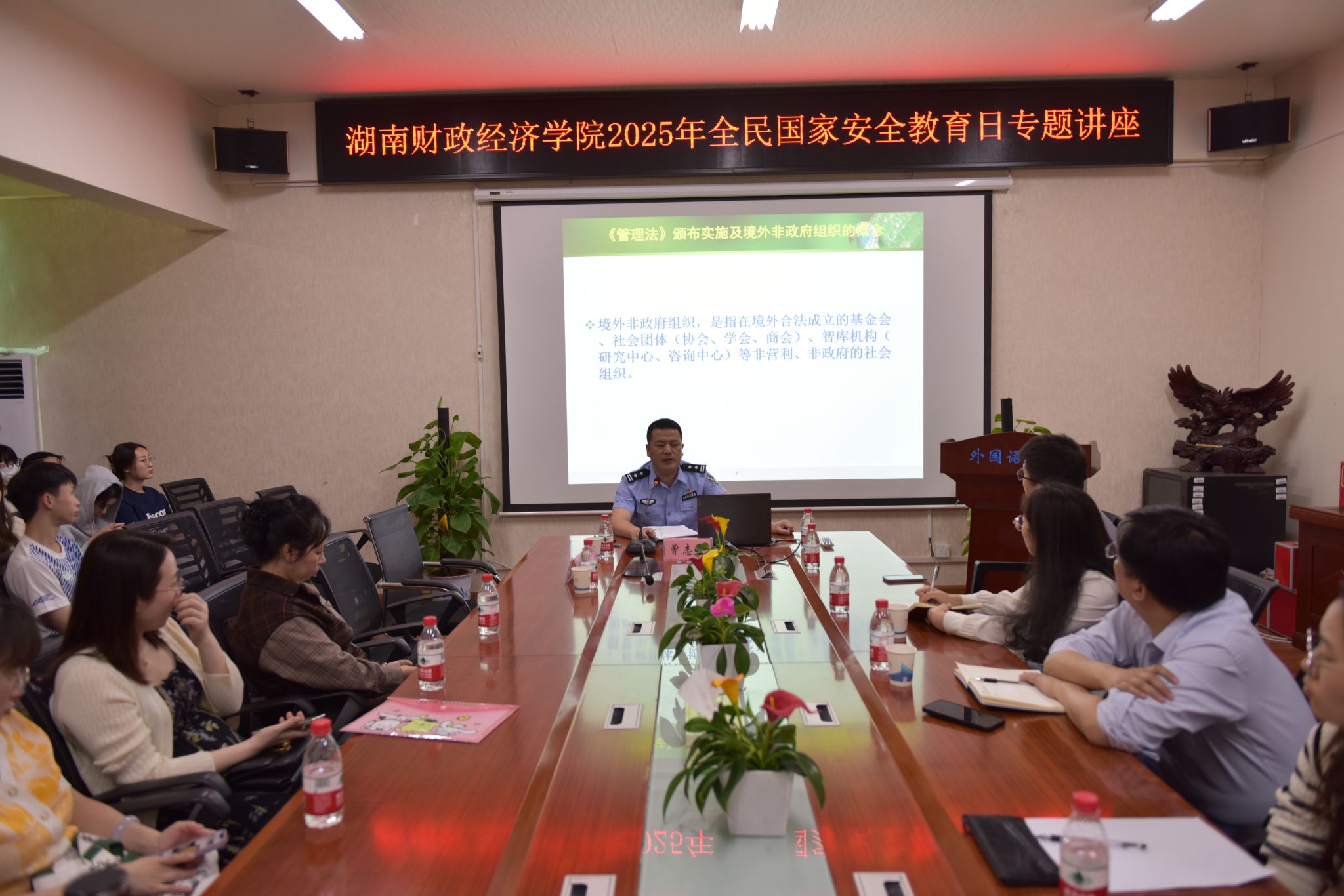 (本网讯)今年4月15日,是第10个全民国家安全教育日。学校紧紧围绕“全民国家安全教育,走深走实十周年”主题,组织开展宣传活动,提高师生维护国家安全的意识。副校长刘钟理、省公安厅文保支队队长章艺文、省公安厅境外非政府组织管理工作处副处长曾志平出席活动。