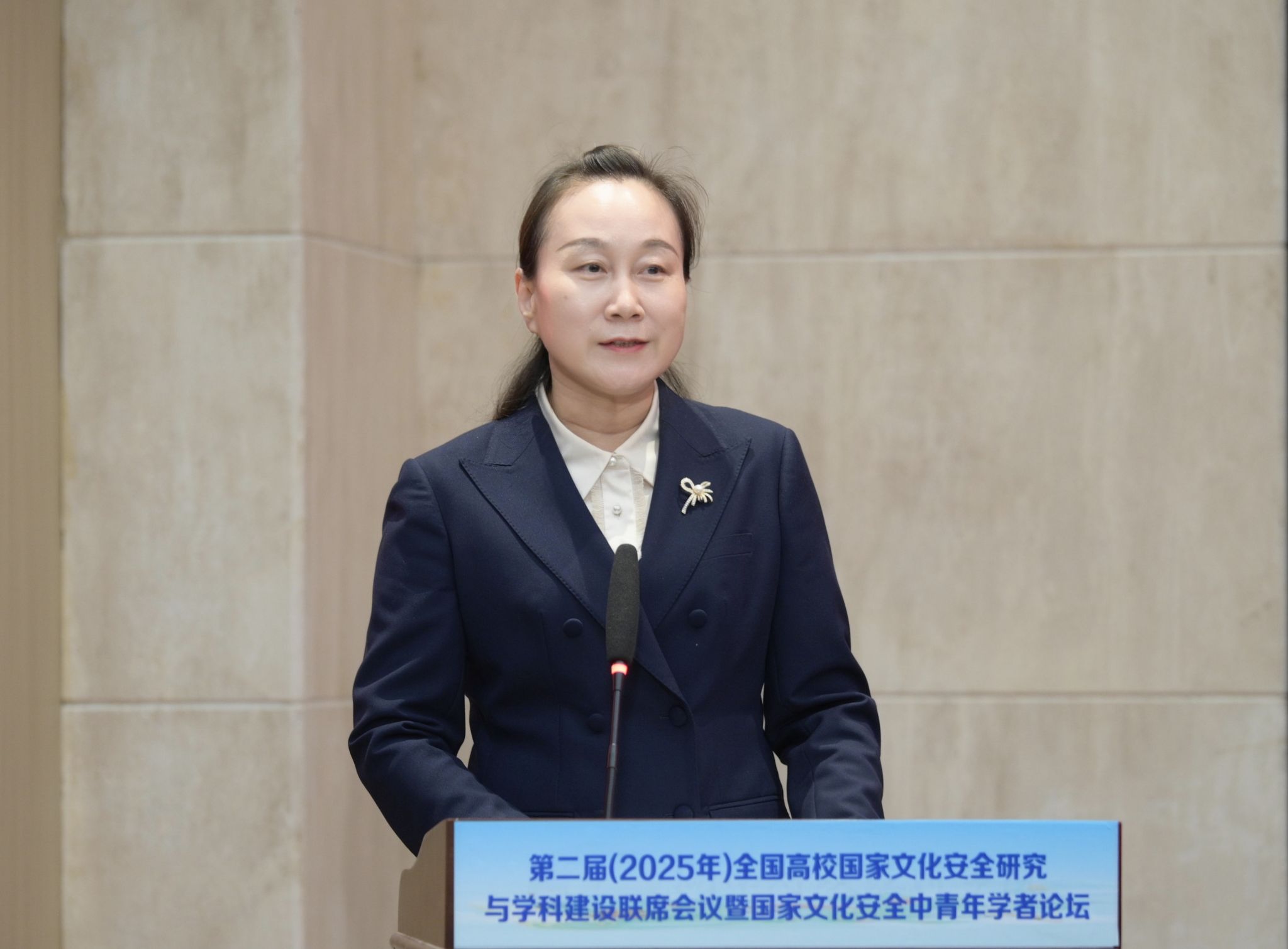 苏玲代表学校对与会专家学者表示欢迎。她表示,本次论坛汇聚各方智慧,既是深入学习贯彻习近平总书记关于国家文化安全重要论述的具体实践,也是推动高校文化安全领域学科体系、学术体系、话语体系建设的重要举措。希望以此次会议为契机,为国家文化安全人才队伍体系建设提供理论支撑与理念指引,激励广大青年学者深耕国家文化安全研究,为该领域发展壮大凝聚力量。
