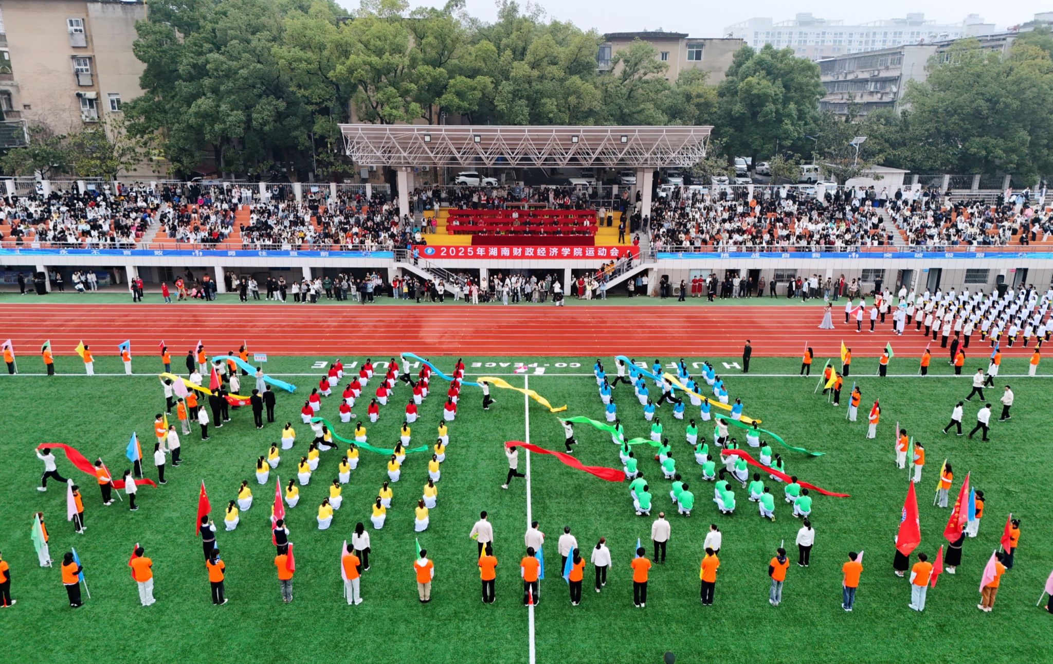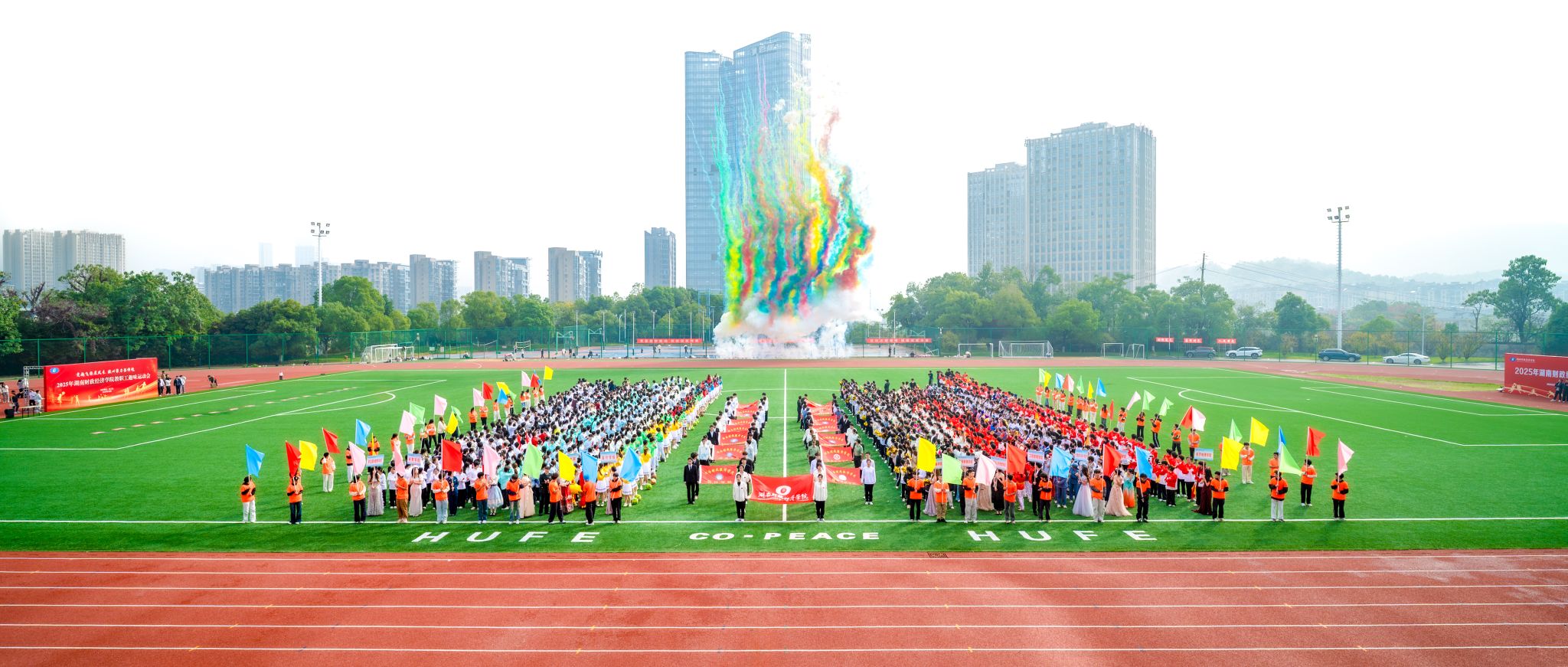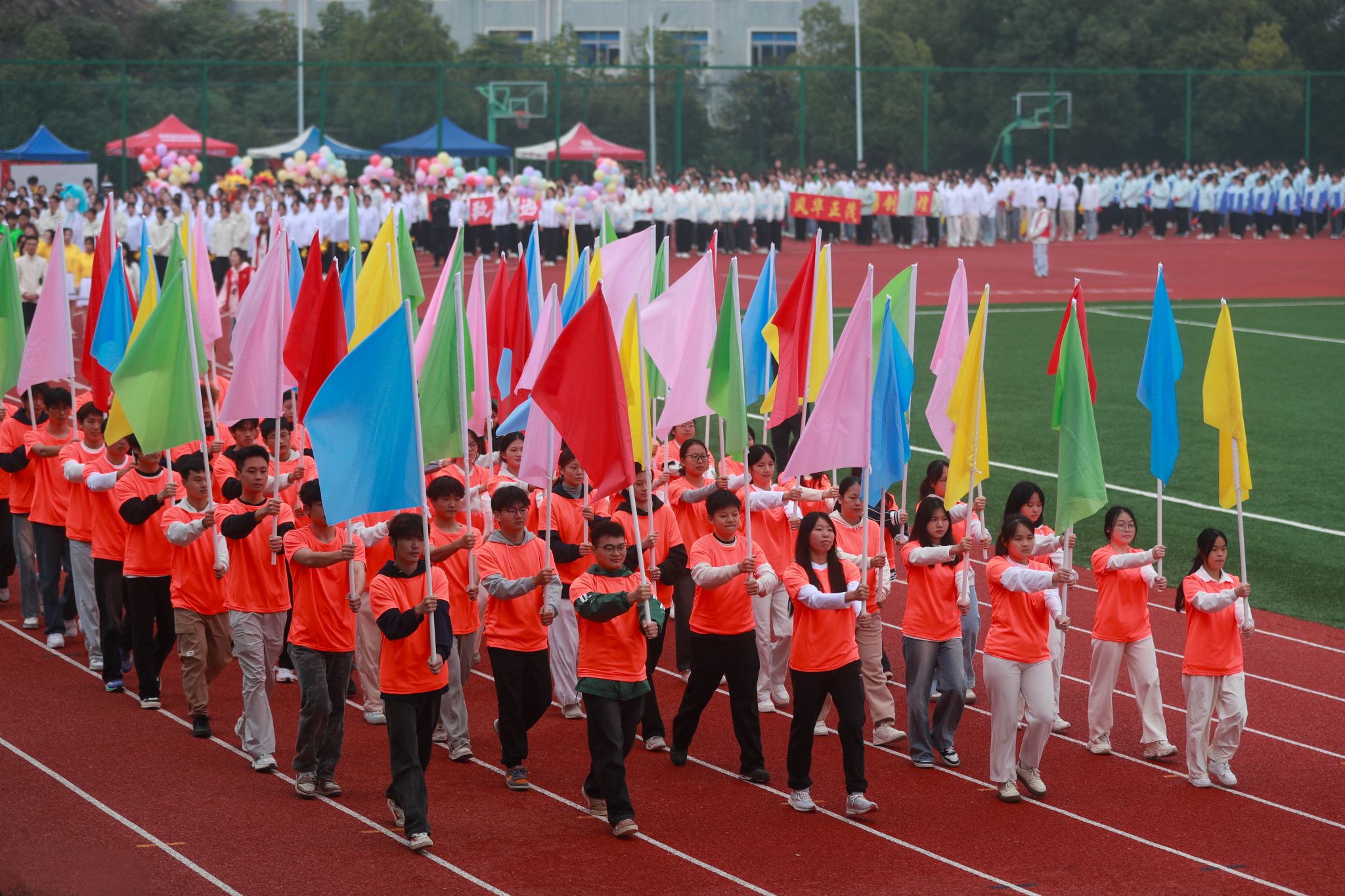 开幕式采用入场仪式与文体表演相结合的形式。在激昂的旋律中,国旗方阵、校旗方阵、彩旗方阵精神抖擞、步伐铿锵,14个二级学院代表方阵各具特色,充分展现了各学院的学科特色与文化内涵。舞龙舞狮威武灵动,武术表演刚柔并济,体育舞蹈活力四射,扇子舞优雅动人。其中,“民族团结”“祖国统一”等主题表演以鲜明的时代内涵引发全场热烈掌声。