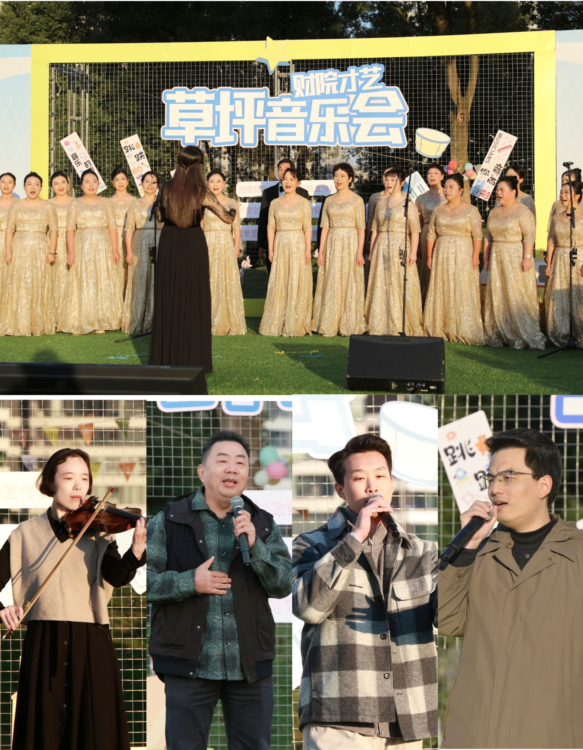 (本网讯)11月19日下午,由党委宣传部、工会、团委联合主办的“财院·才艺”首届草坪音乐会在校园西北角草坪举行。校党委书记易棉阳,党委副书记苏玲,副校长赵鹤平、副校长刘钟理、副校长潘爱民,党委委员、宣传部、统战部部长文炳勋等校领导出席活动。