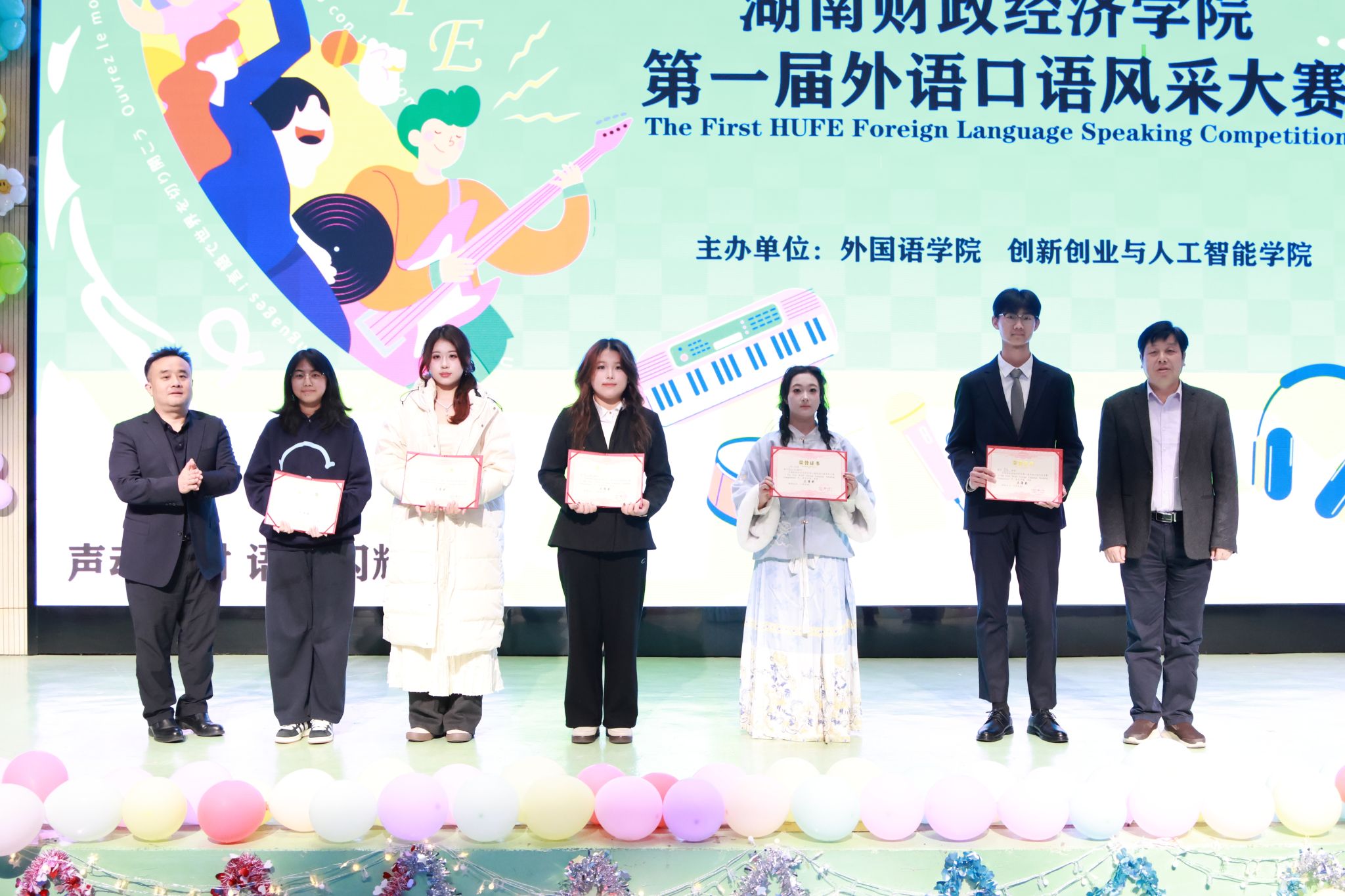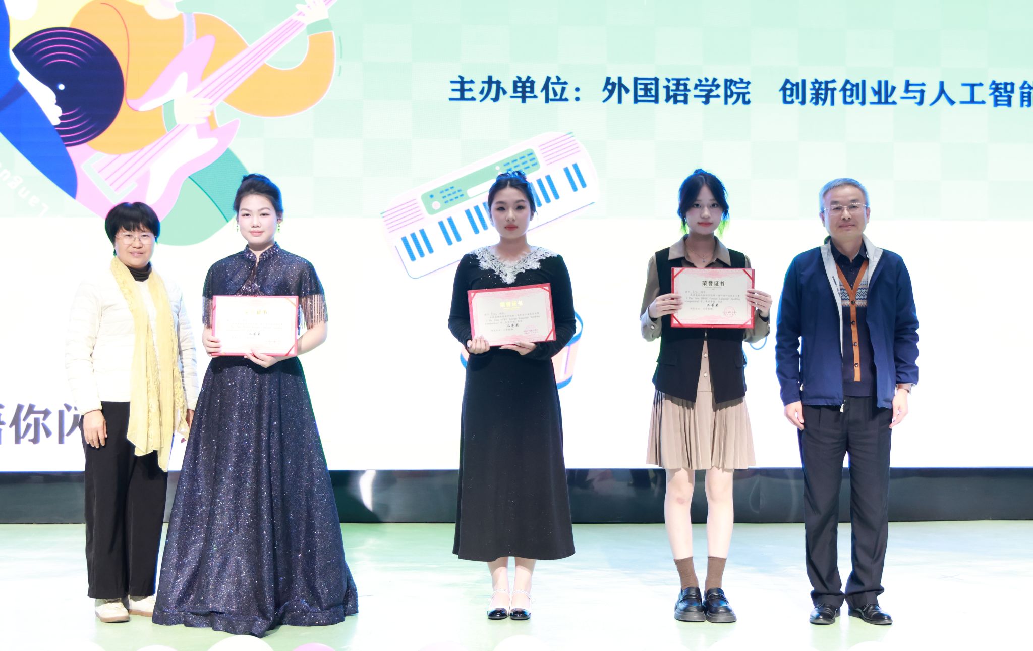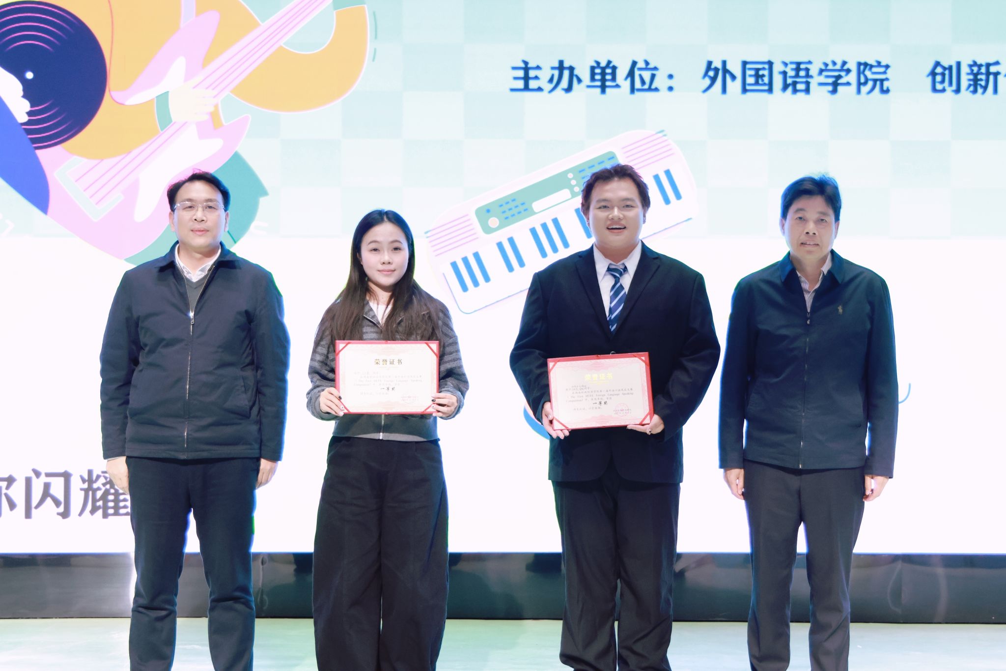经评审,大赛共评出一等奖2项、二等奖3项、三等奖5项及优胜奖6项。其中,《My Hometown Cuisine》《独立的启示》荣获一等奖。与会领导为获奖选手颁奖。