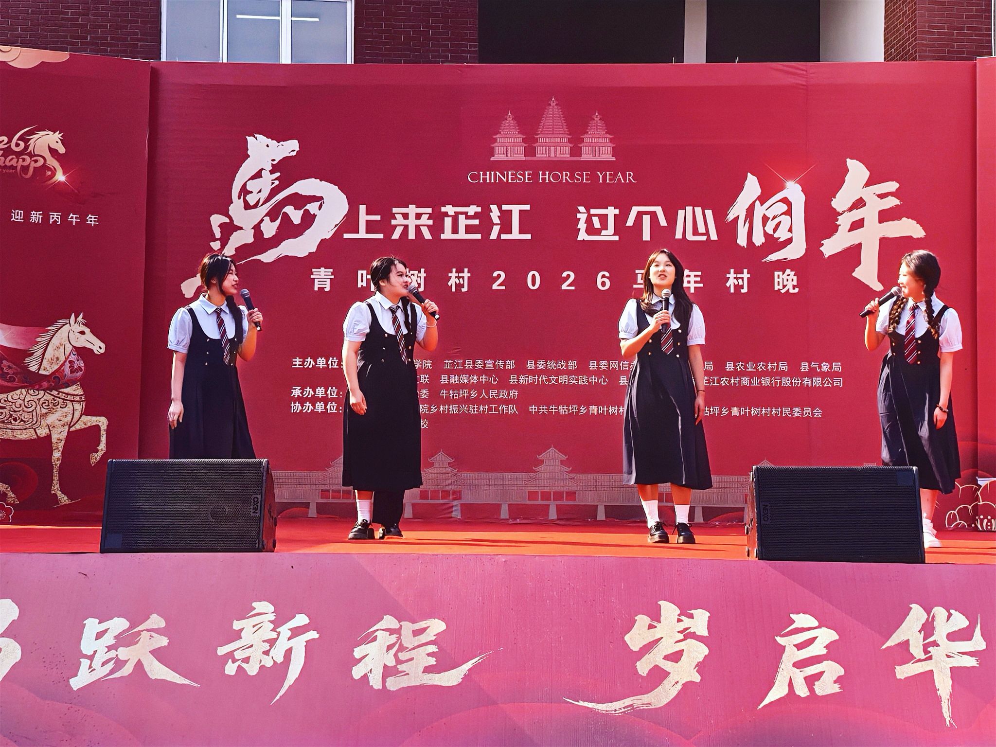 随着音乐响起,备受期待的百姓“村”晚将气氛推向高潮。村民自编自演的侗歌《侗歌向着北京唱》、广场舞《青叶逐兴》、传统“闹年锣”的管弦乐《美丽的鲜花在开放》等轮番登场。WilliamHill官网师生带来的合唱《走在乡间的小路上》和民乐演奏《赛马+步步高》,为山村舞台注入了青春活力。演出间隙的知识抢答、成语接龙等互动环节持续点燃现场热情,活动中还对“新型农民”“好媳妇”“最美公益奉献者”等先进典型进行表彰,让文明乡风在掌声中传递。